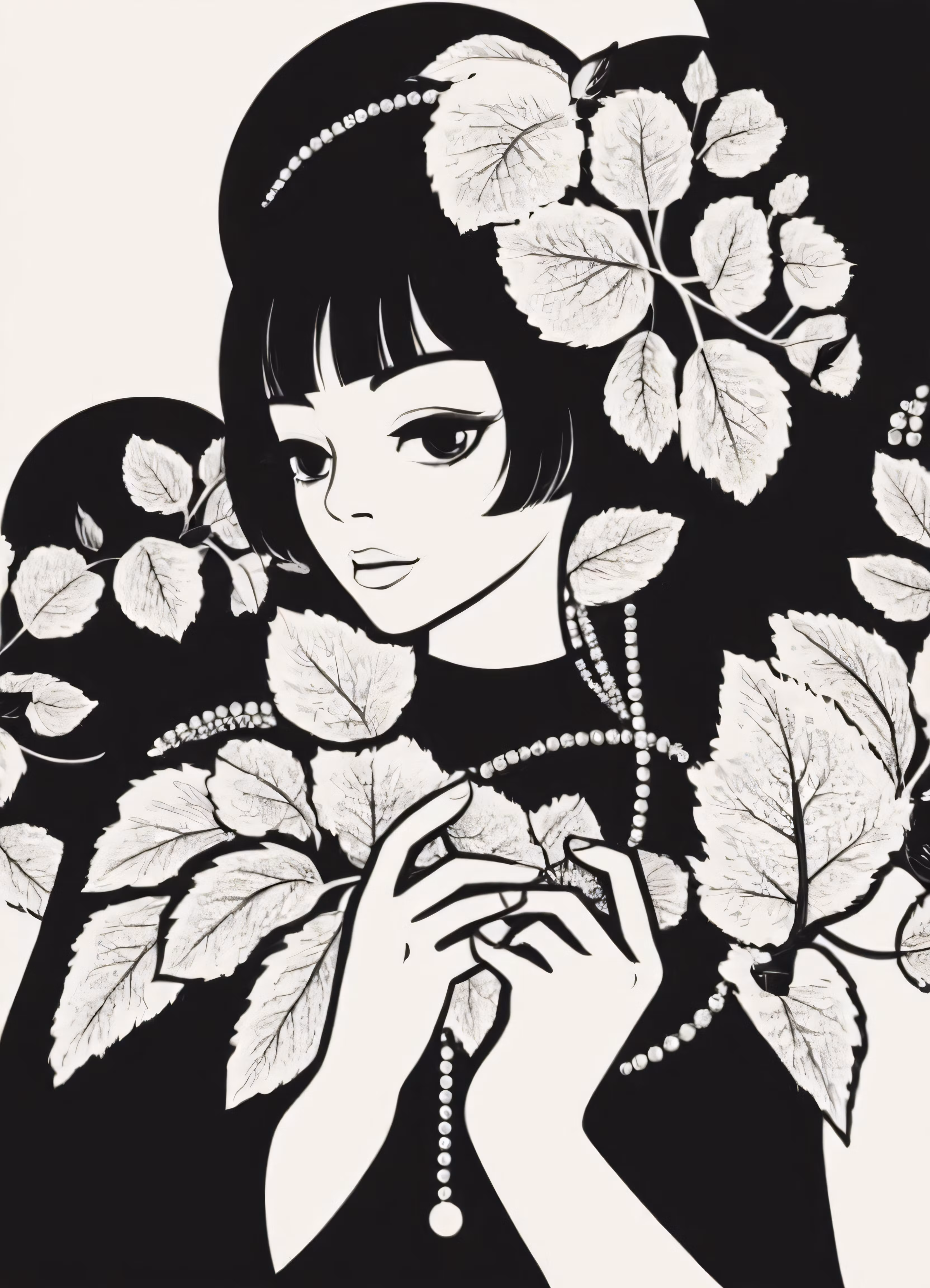 High resolution picture, free to use, the cover to the autumn /an ink drawing of a girl and leaves