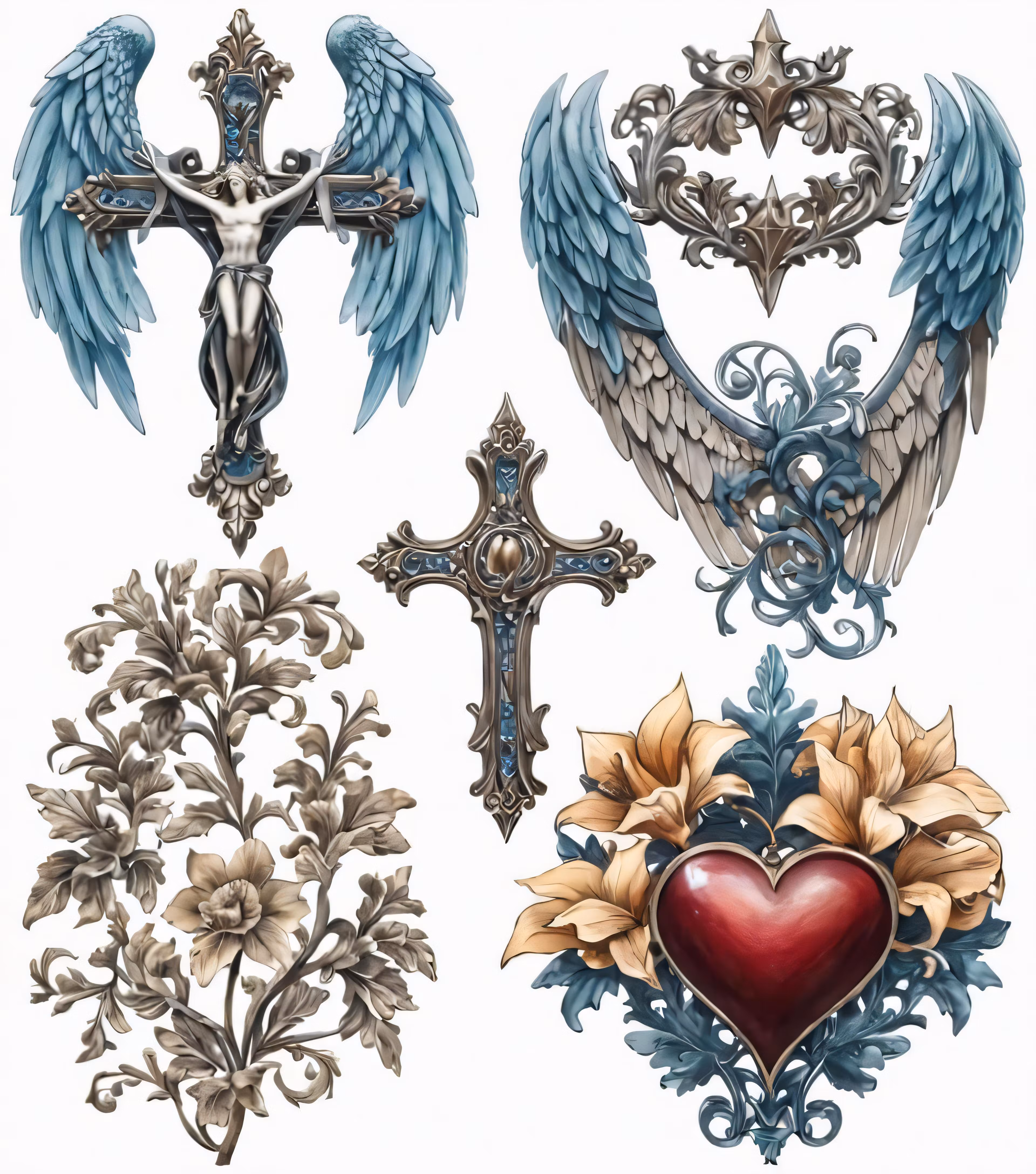 High resolution picture, free to use, the crosses, cross tattoos and angel wings are in blue