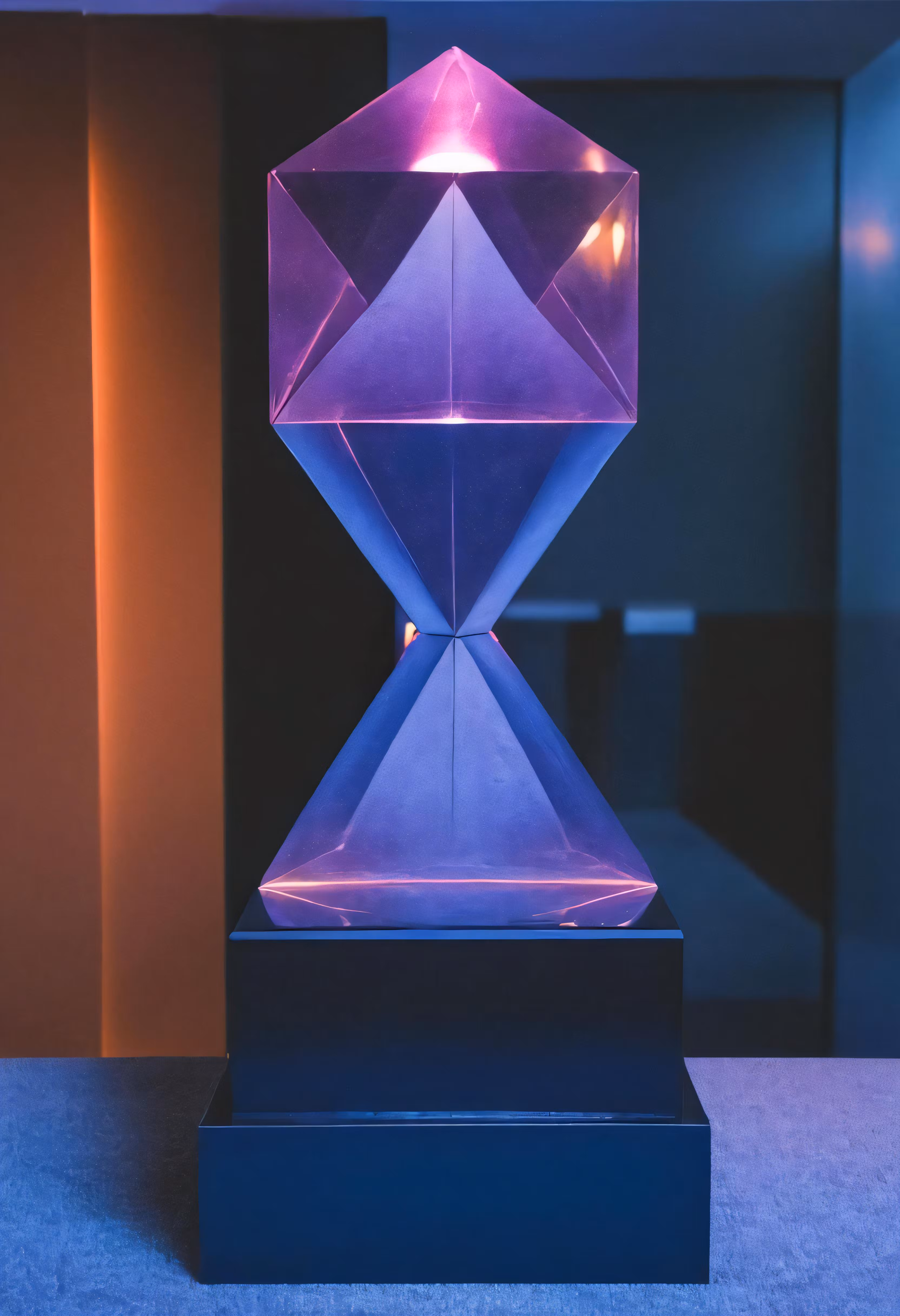 High resolution picture, free to use, the decorative glass object is lit up purple