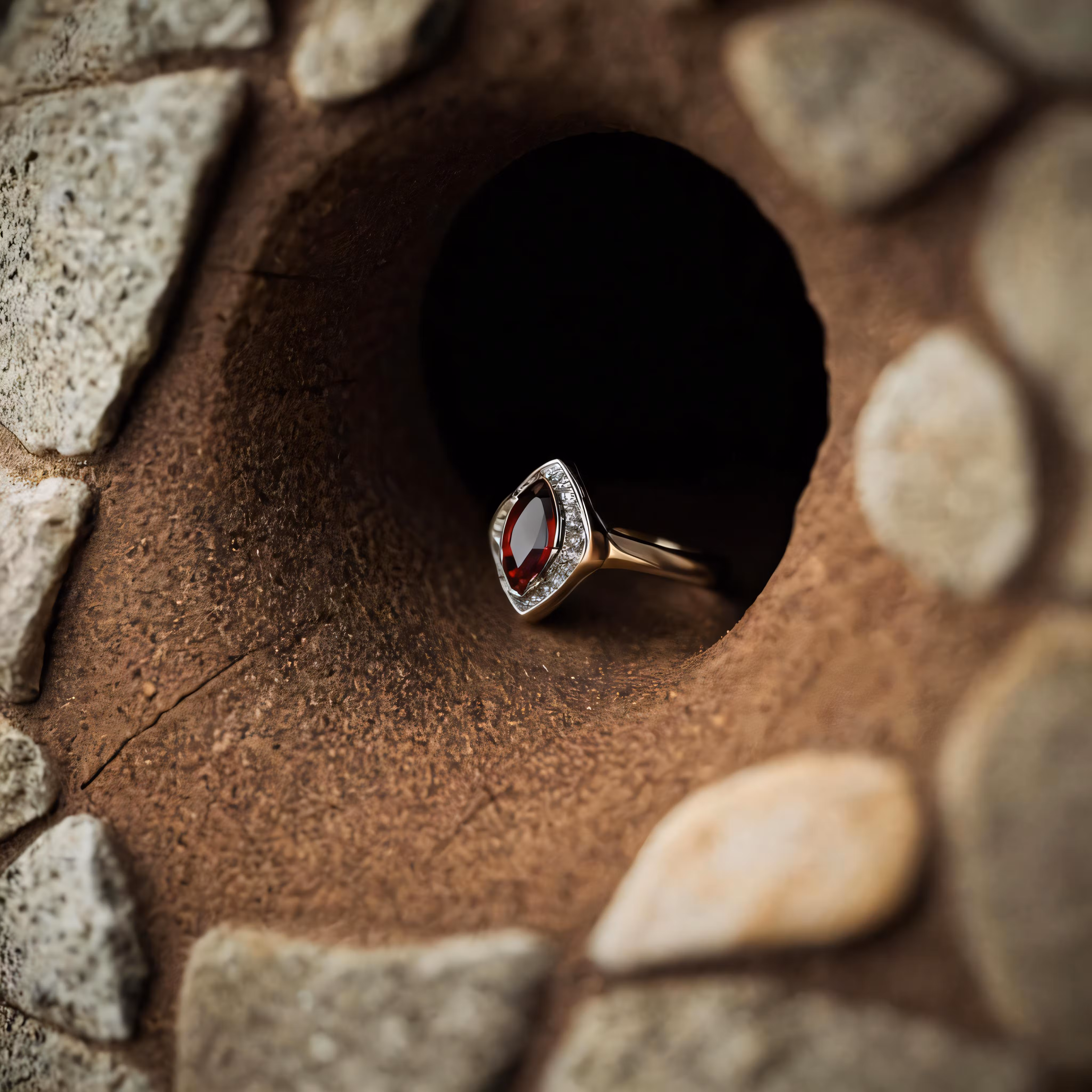 High resolution picture, free to use, the diamond ring is laying inside a hole made of stones