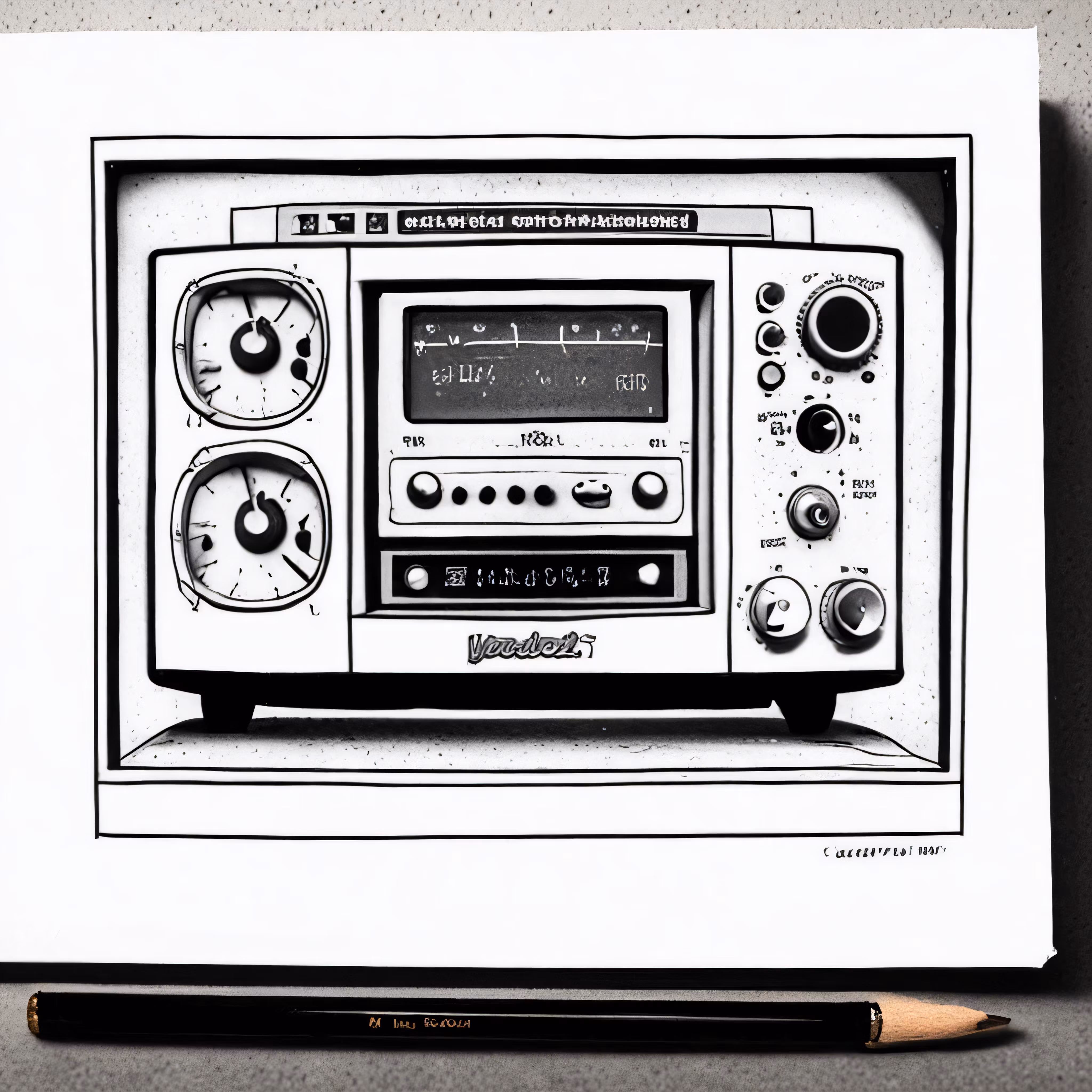 High resolution picture, free to use, the drawing is on paper, but the design for the stereo is black and white