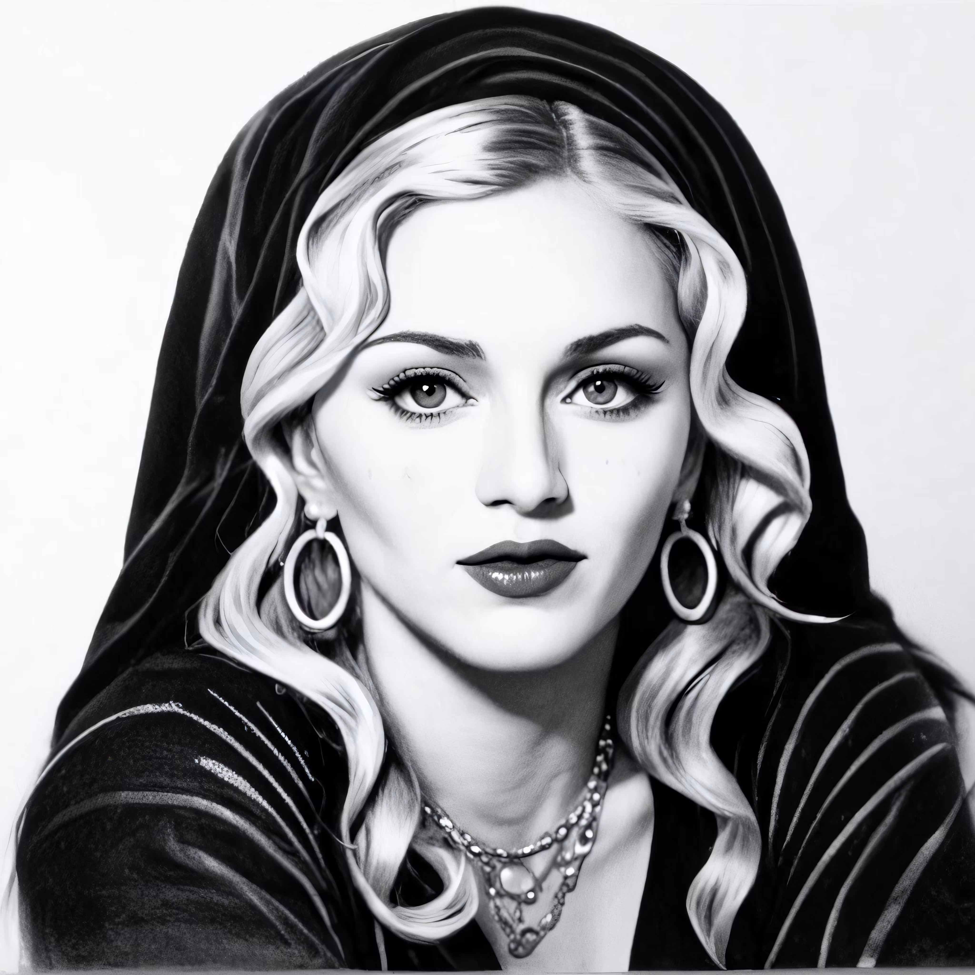 High resolution picture, free to use, the drawing of madonna is drawn with black and white paper