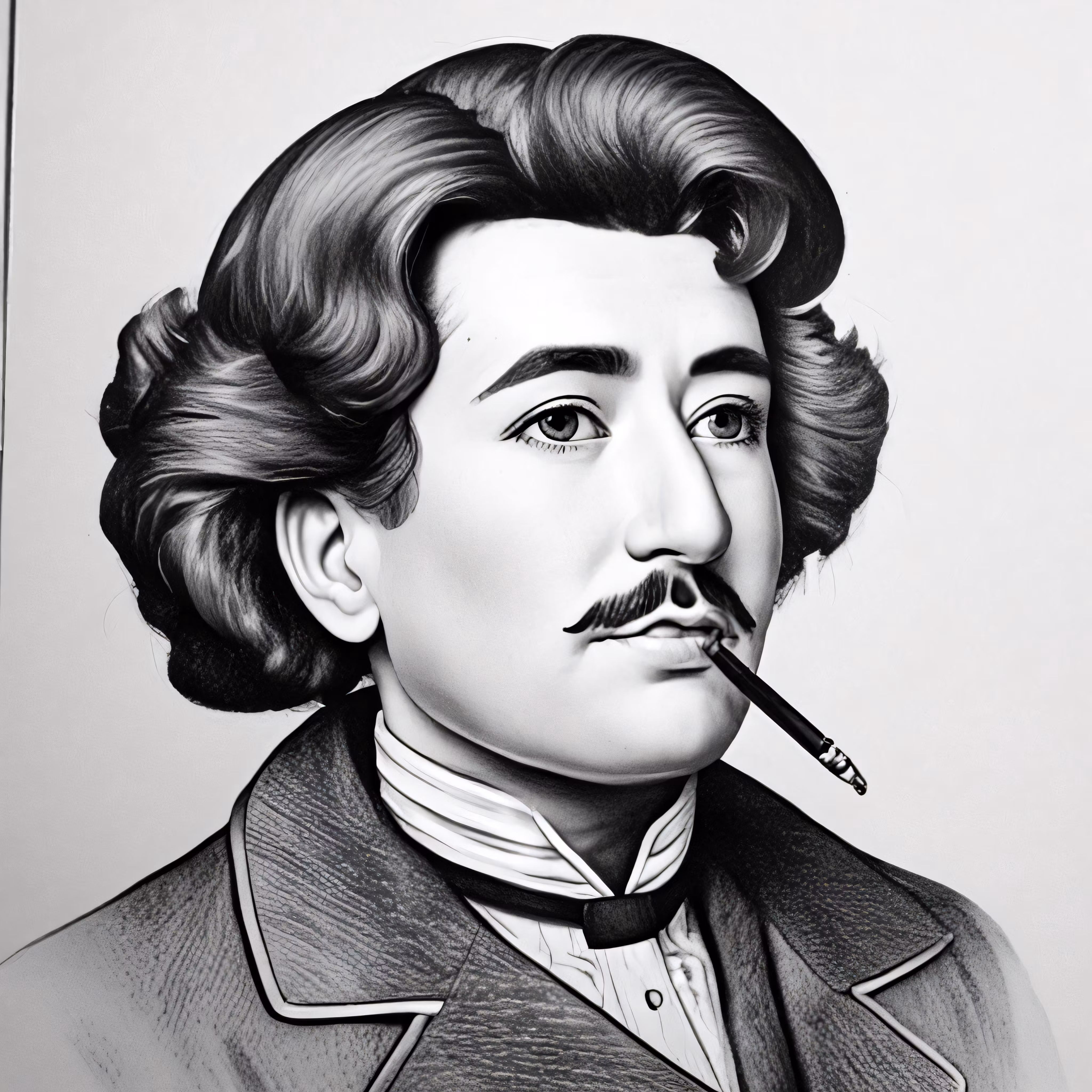 High resolution picture, free to use, the drawing shows a man wearing a coat and tie, with his nose covered in smoke