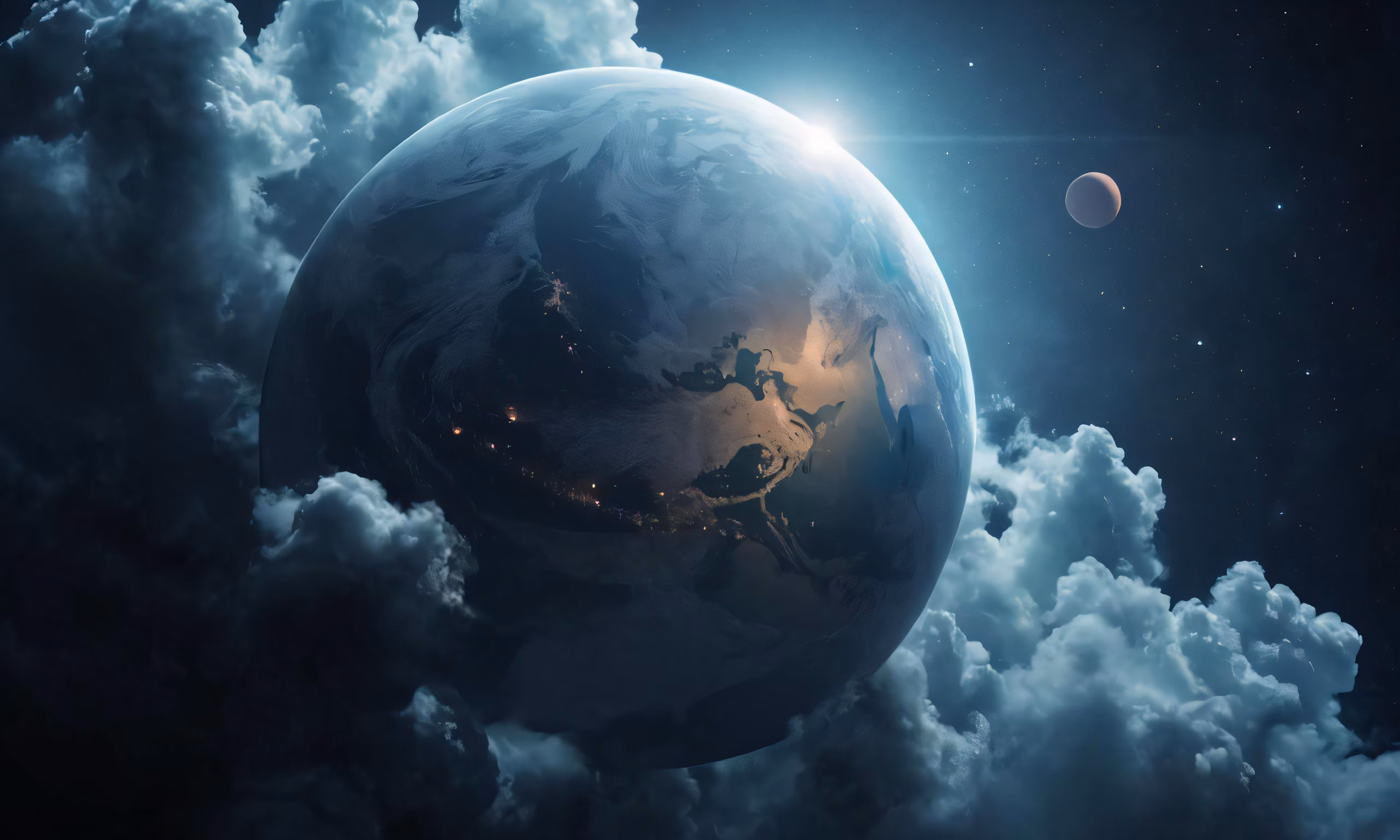 High resolution picture, free to use, the earth in the clouds is shining