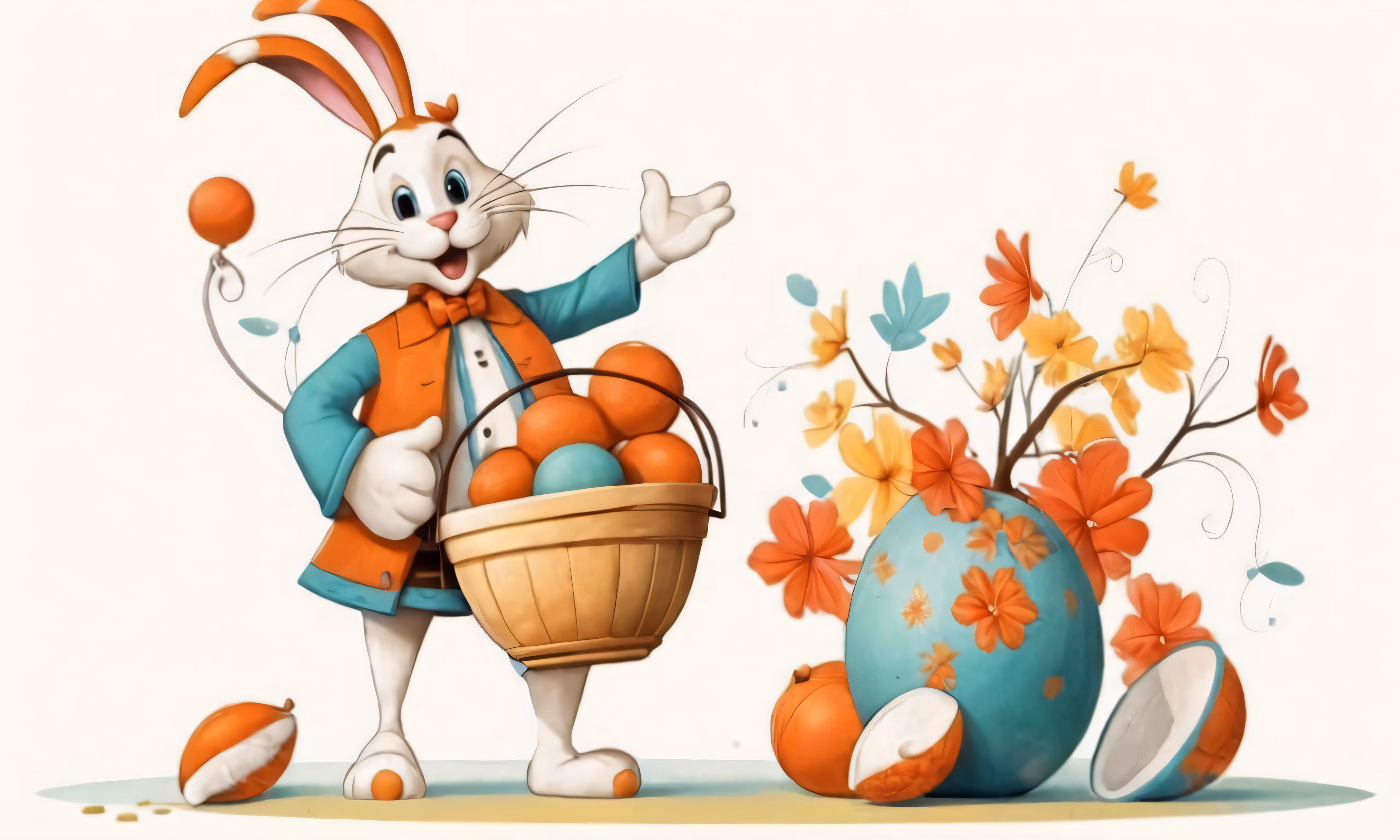 High resolution picture, free to use, the easter bunny is ready to enter his basket