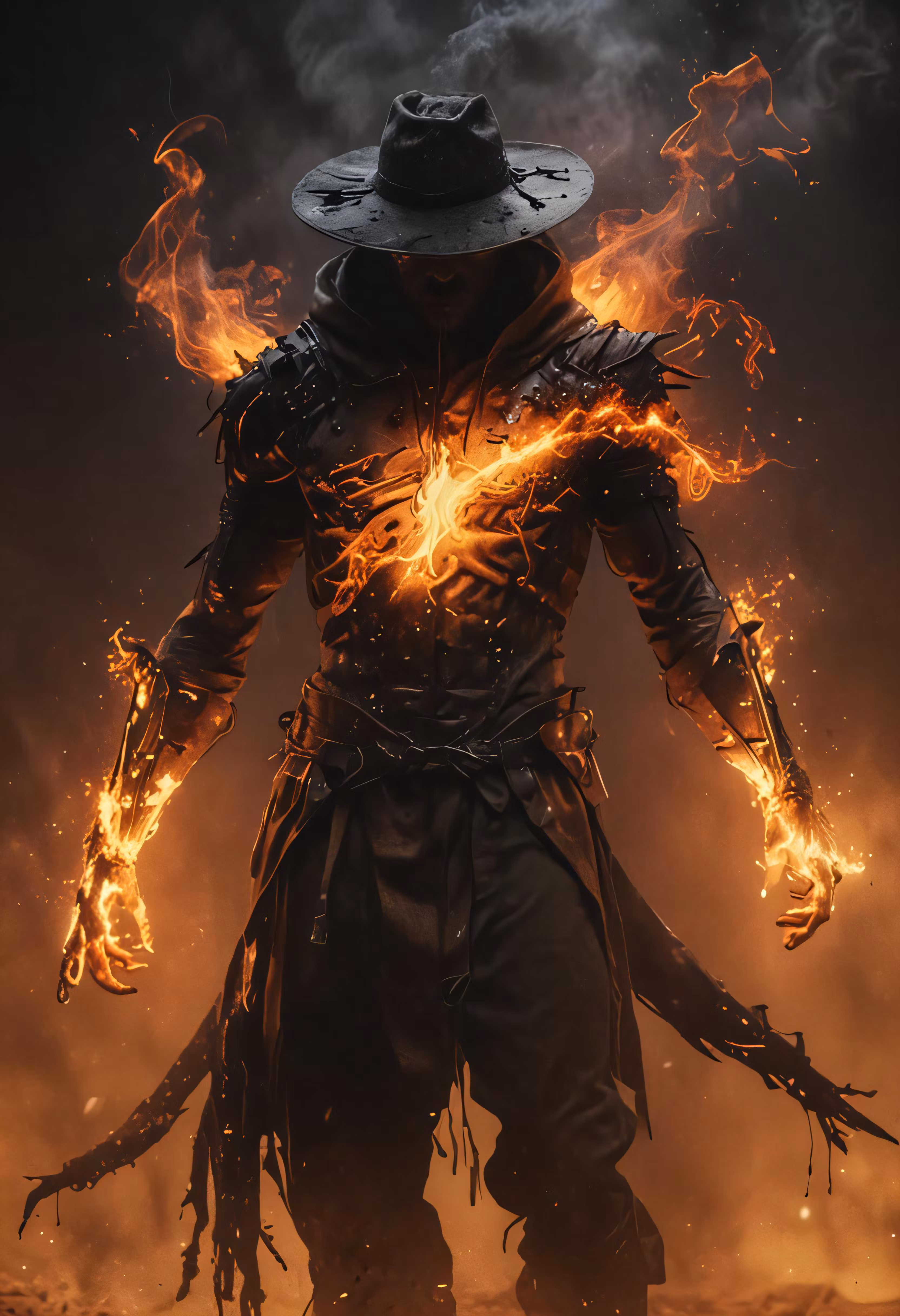 High resolution picture, free to use, the elder hunter is glowing, blazing up flames