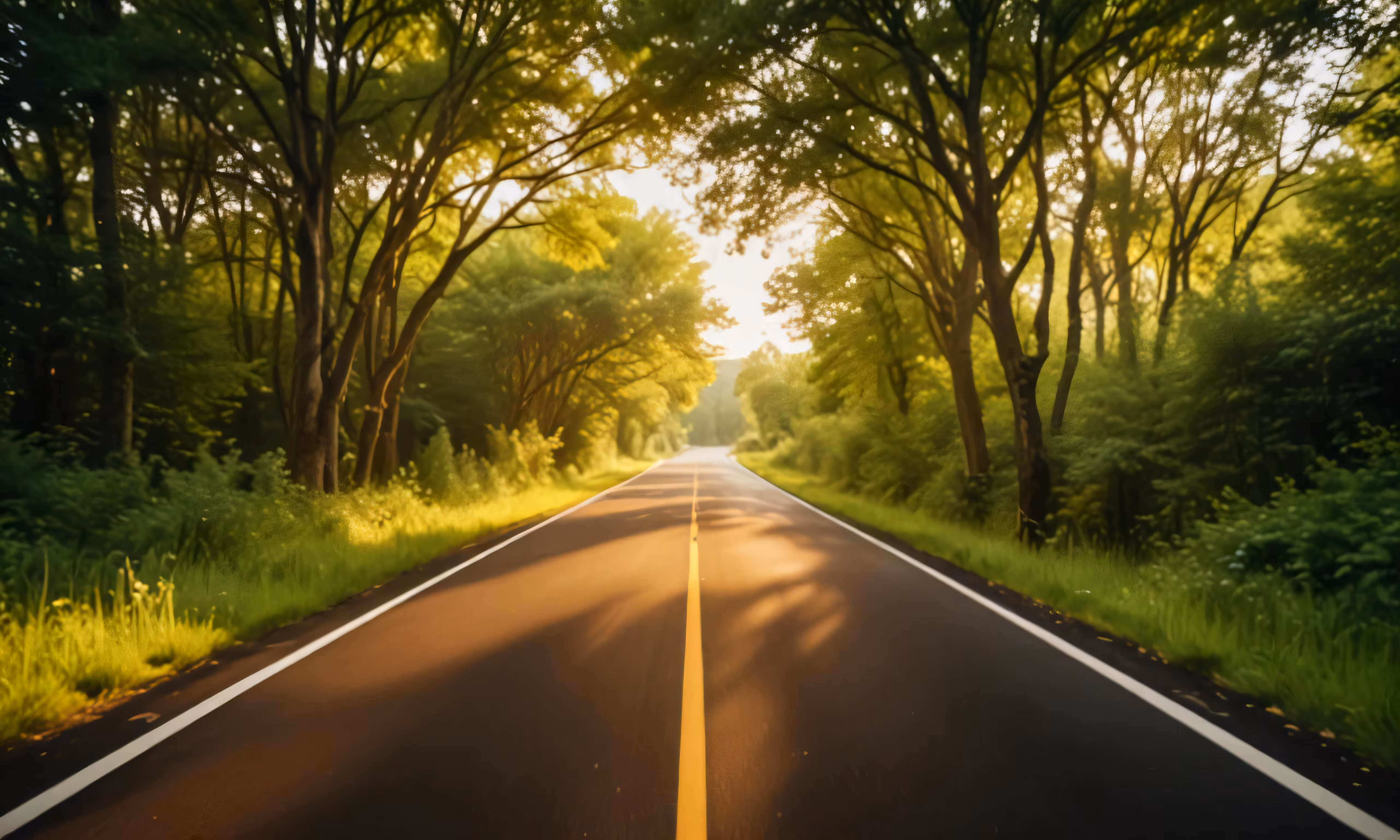 High resolution picture, free to use, the empty road is shown surrounded by trees
