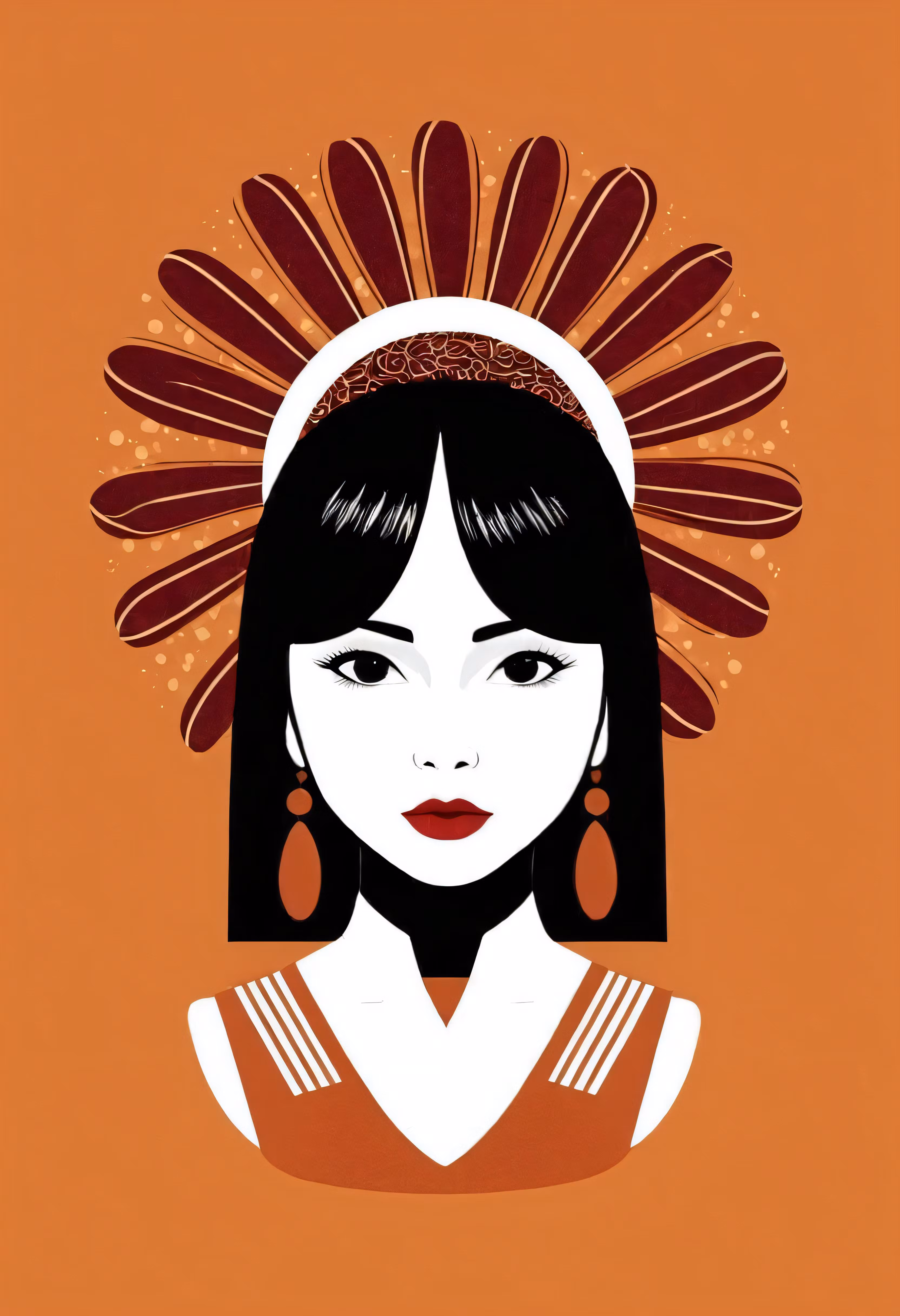 High resolution picture, free to use, the face of a native american woman in an orange background