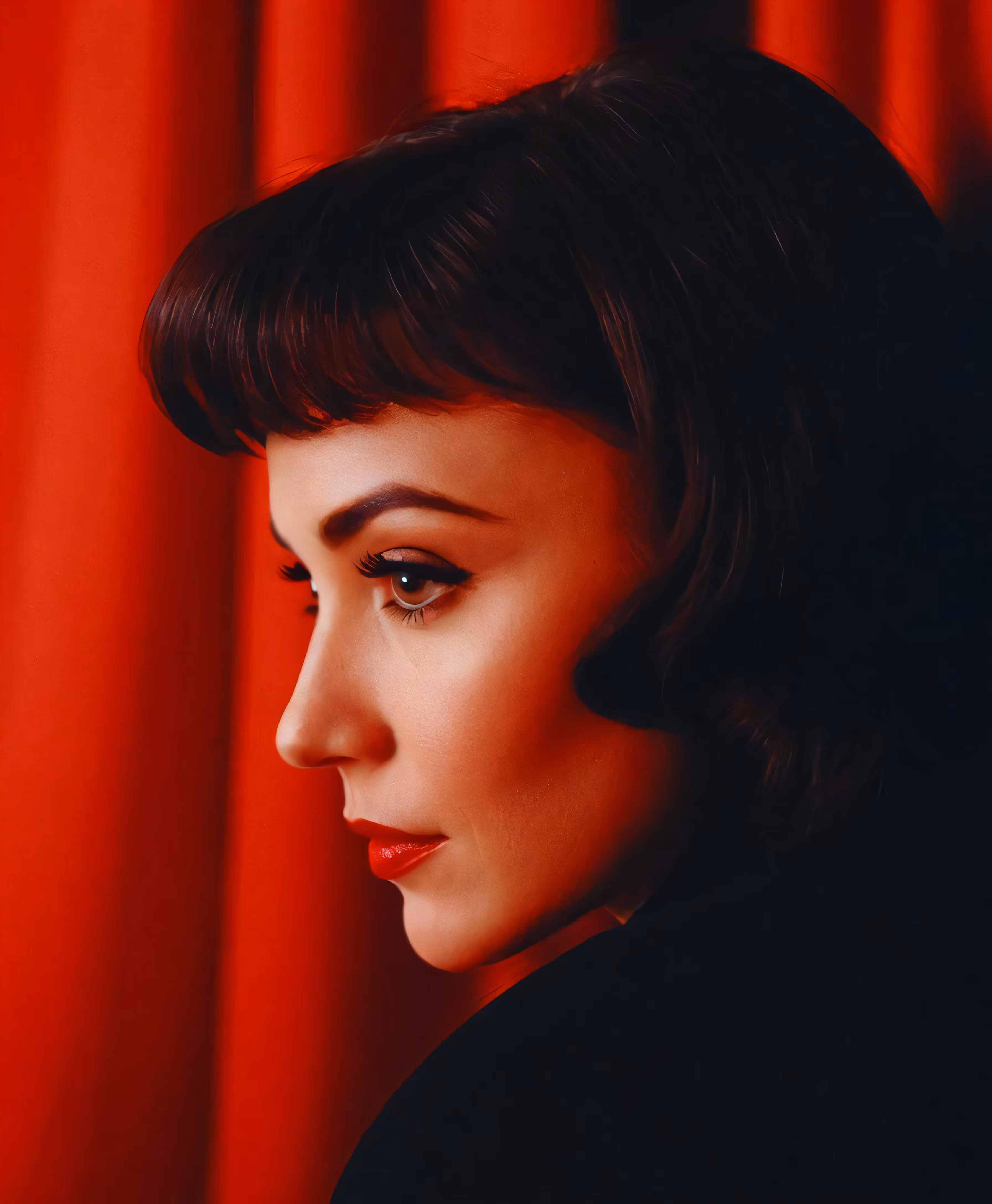 High resolution picture, free to use, the face of a woman with black hair and makeup