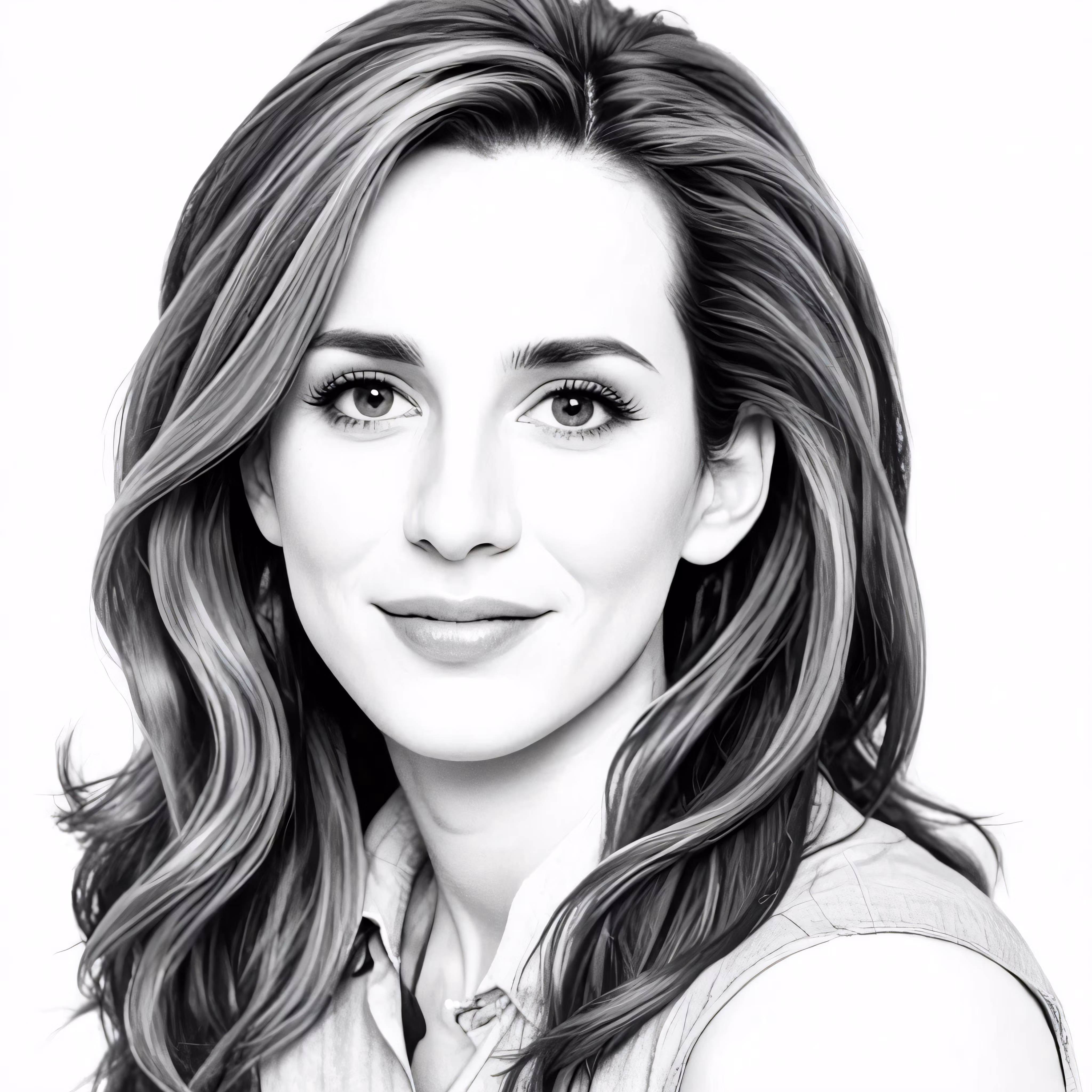 High resolution picture, free to use, the face of a woman with wavy hair, in a dress shirt and long wavy curls