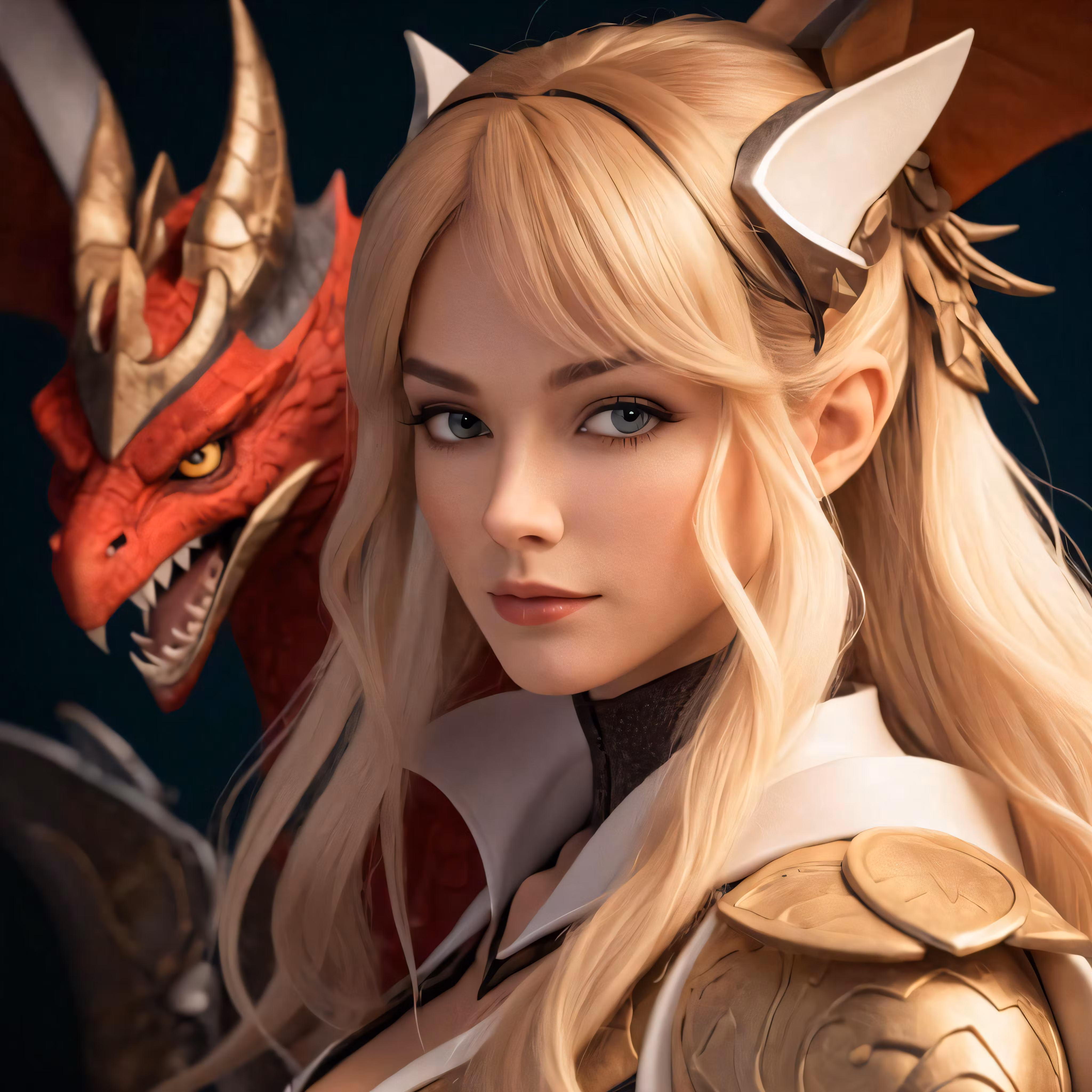 High resolution picture, free to use, the face of an animated character with a dragon and horns