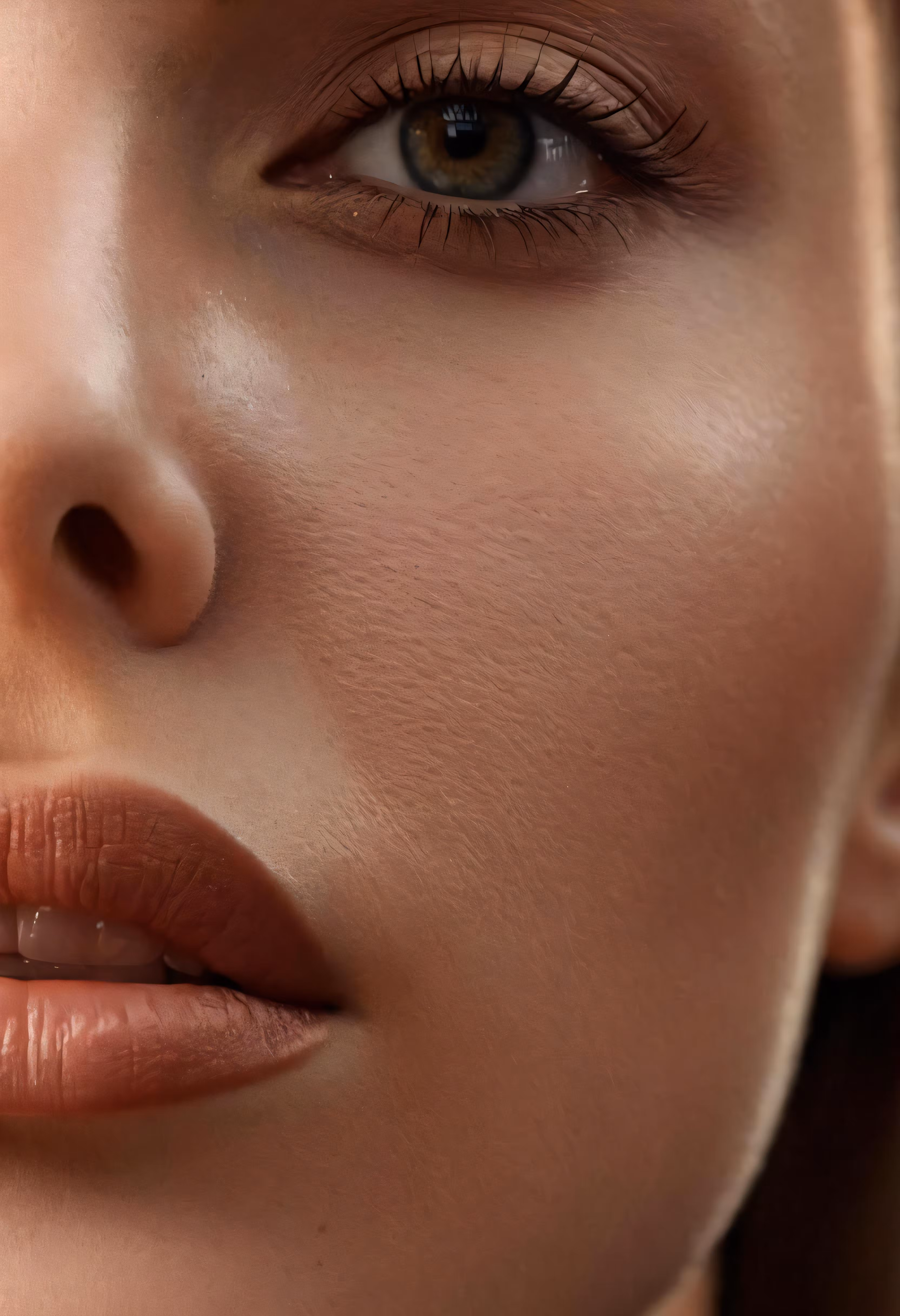 High resolution picture, free to use, the female face shows an upper lip, short eyelashes and dark eye lashes