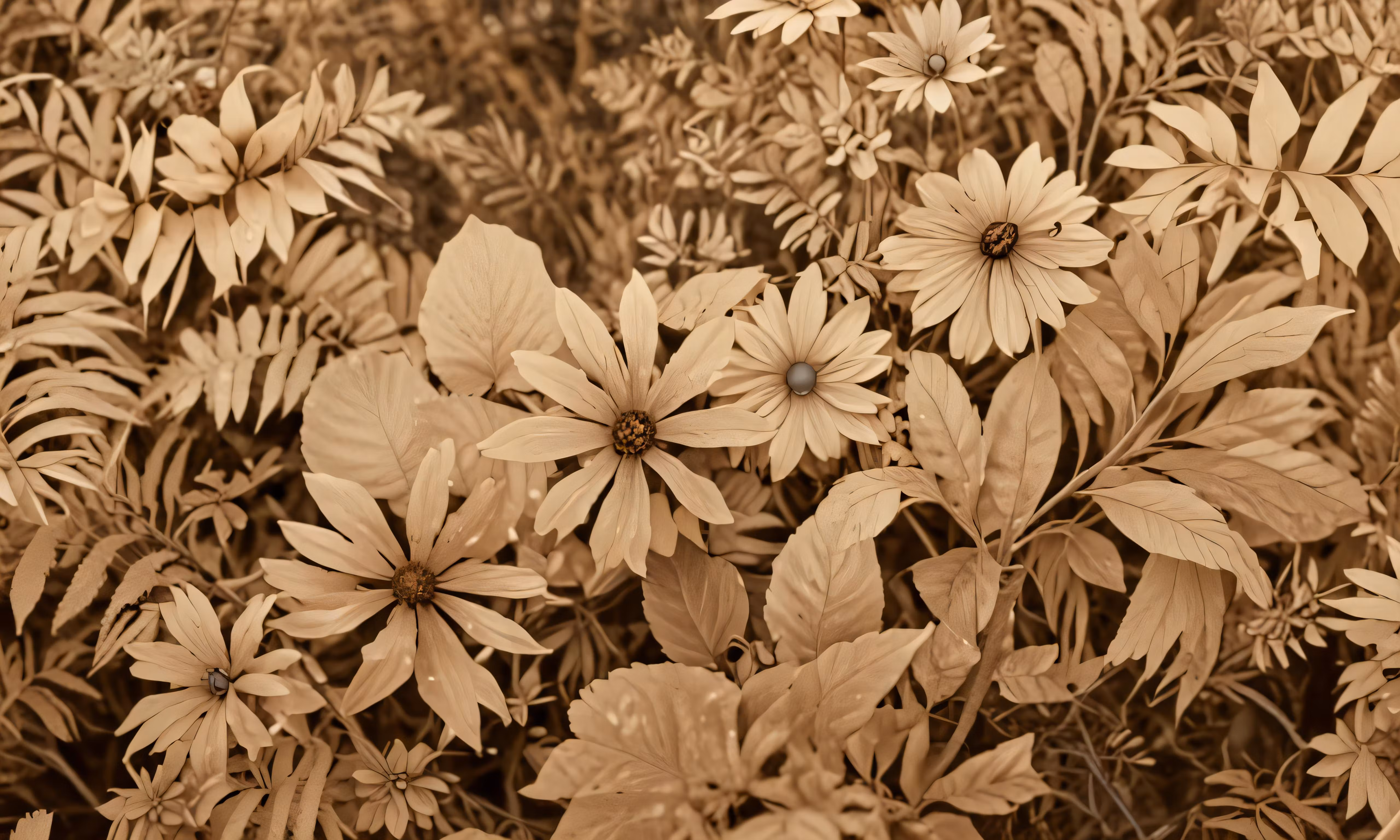 High resolution picture, free to use, the flowers have lots of leaves in sepia