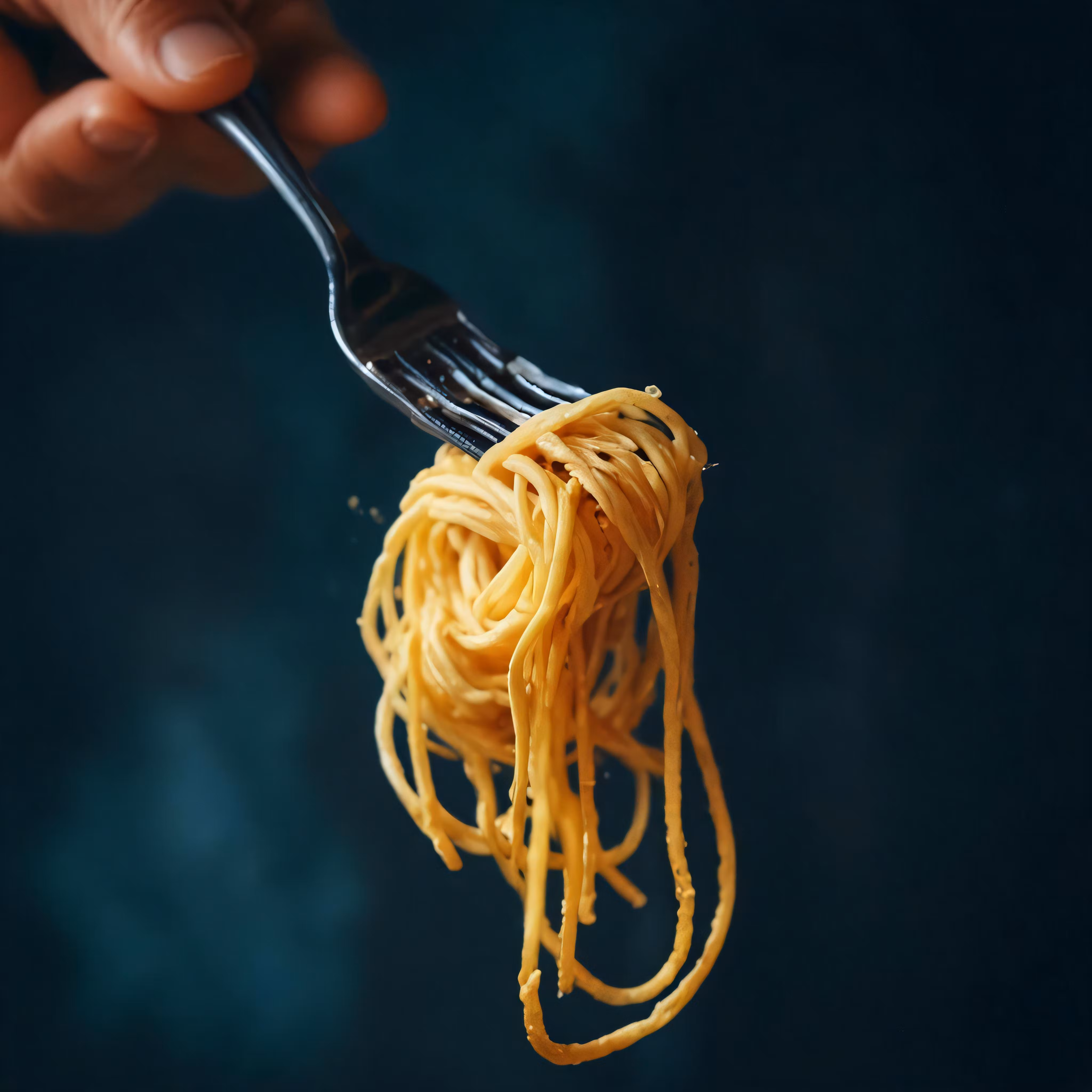 High resolution picture, free to use, the fork is full of spaghetti as a person eats it