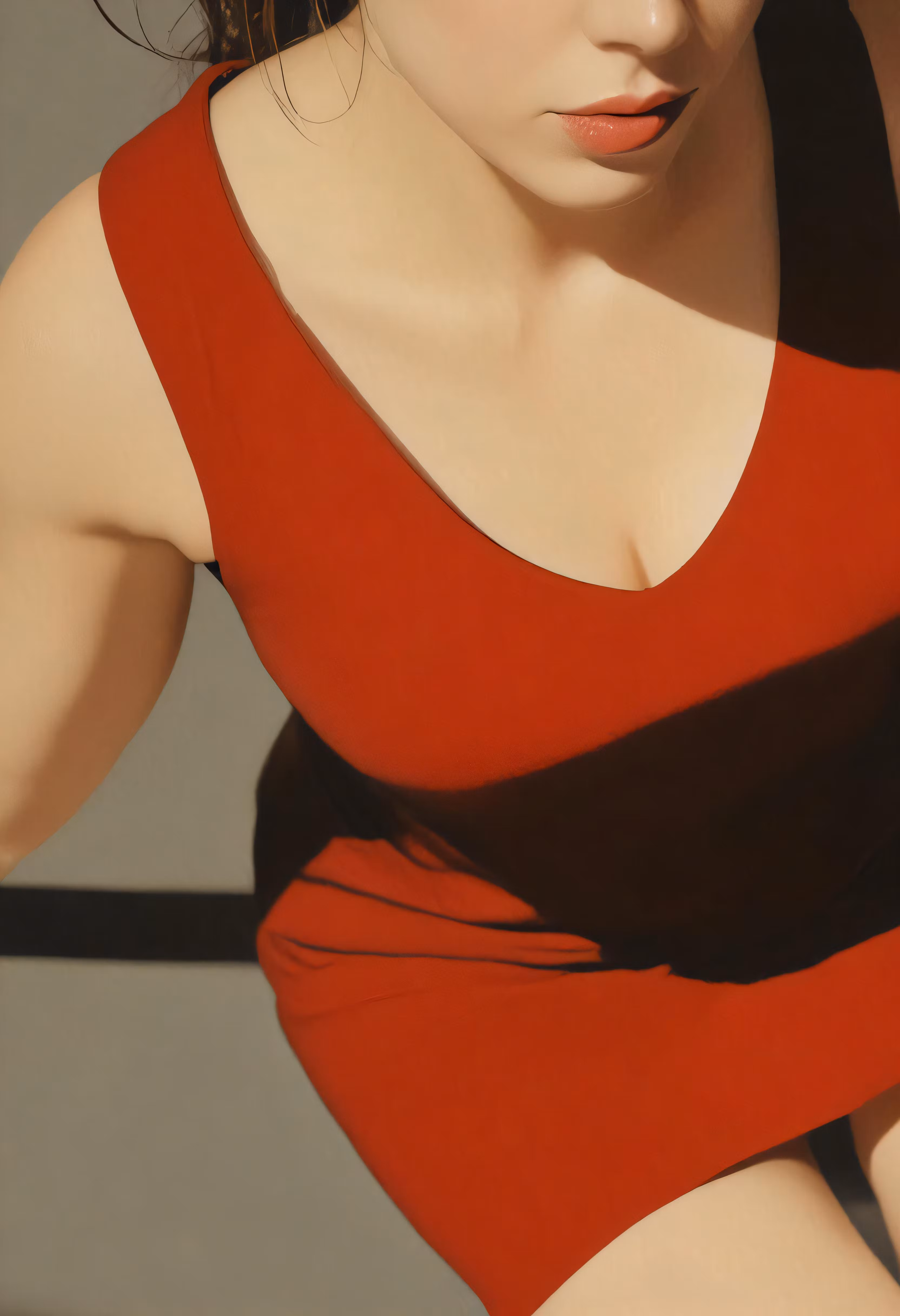High resolution picture, free to use, the girl in a red body suit posing for a photo