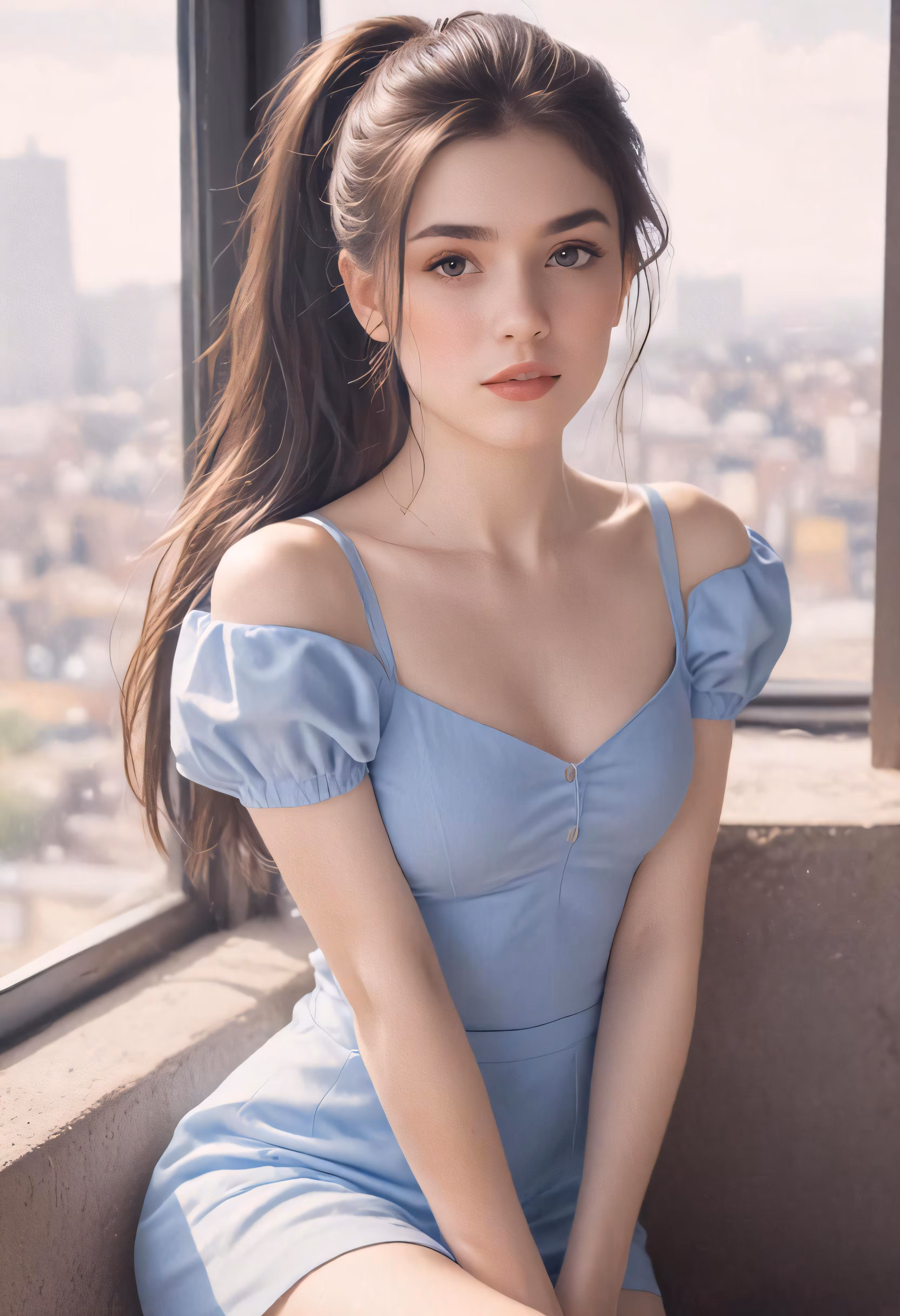 High resolution picture, free to use, the girl is posing for a photo by the window