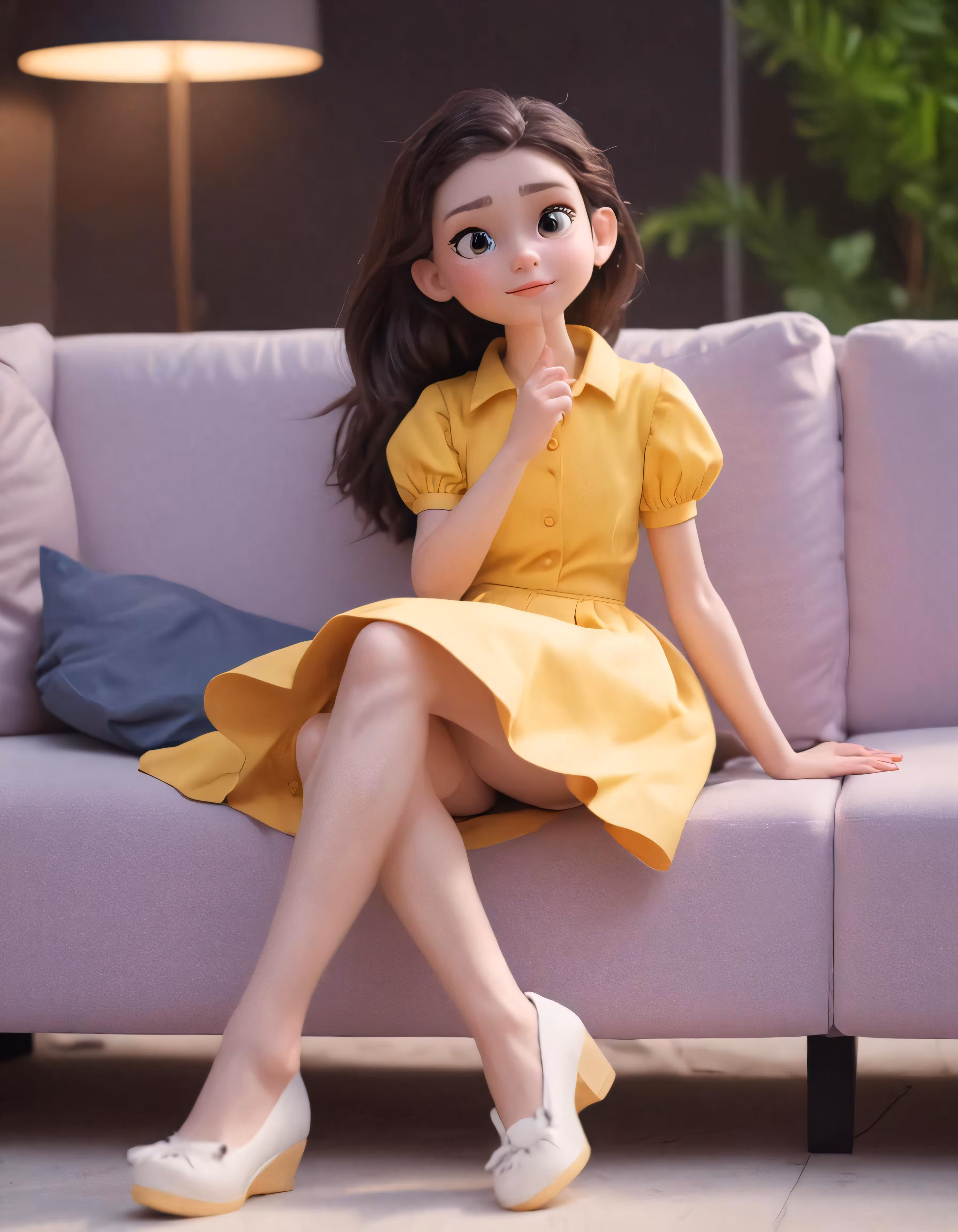 High resolution picture, free to use, the girl is sitting on a purple couch
