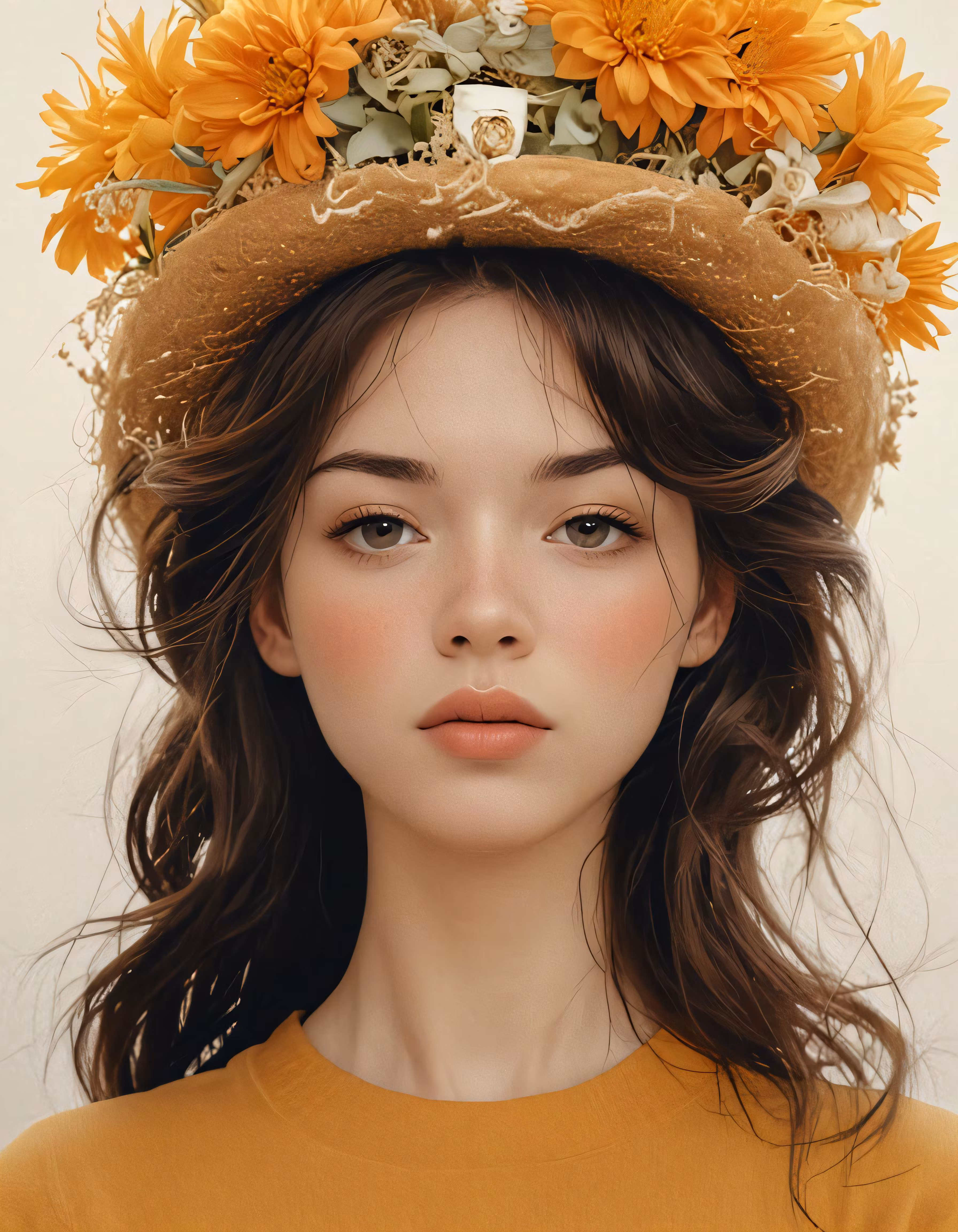 High resolution picture, free to use, the girl is wearing a straw hat with flowers on it
