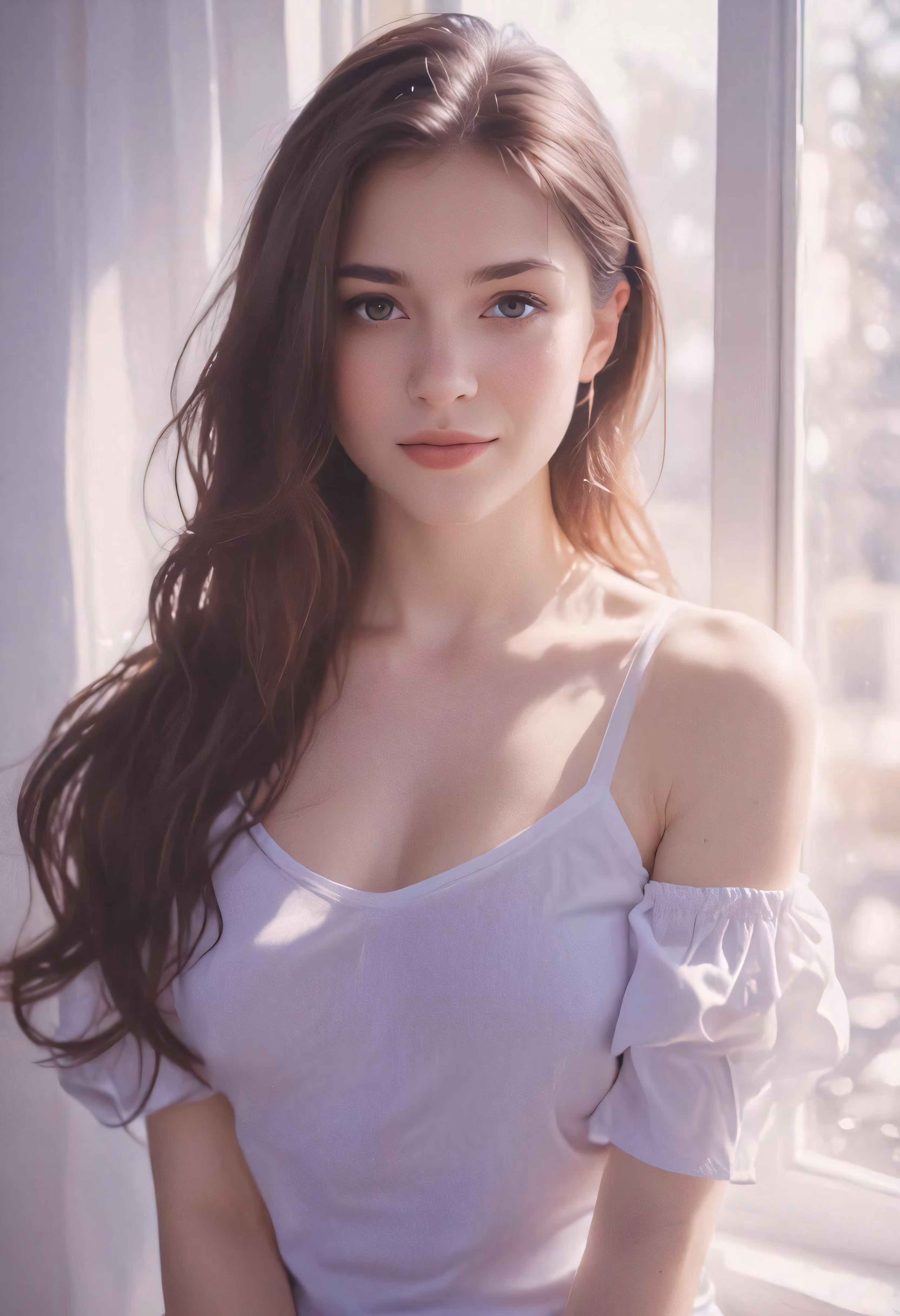 High resolution picture, free to use, the girl posing in a white shirt