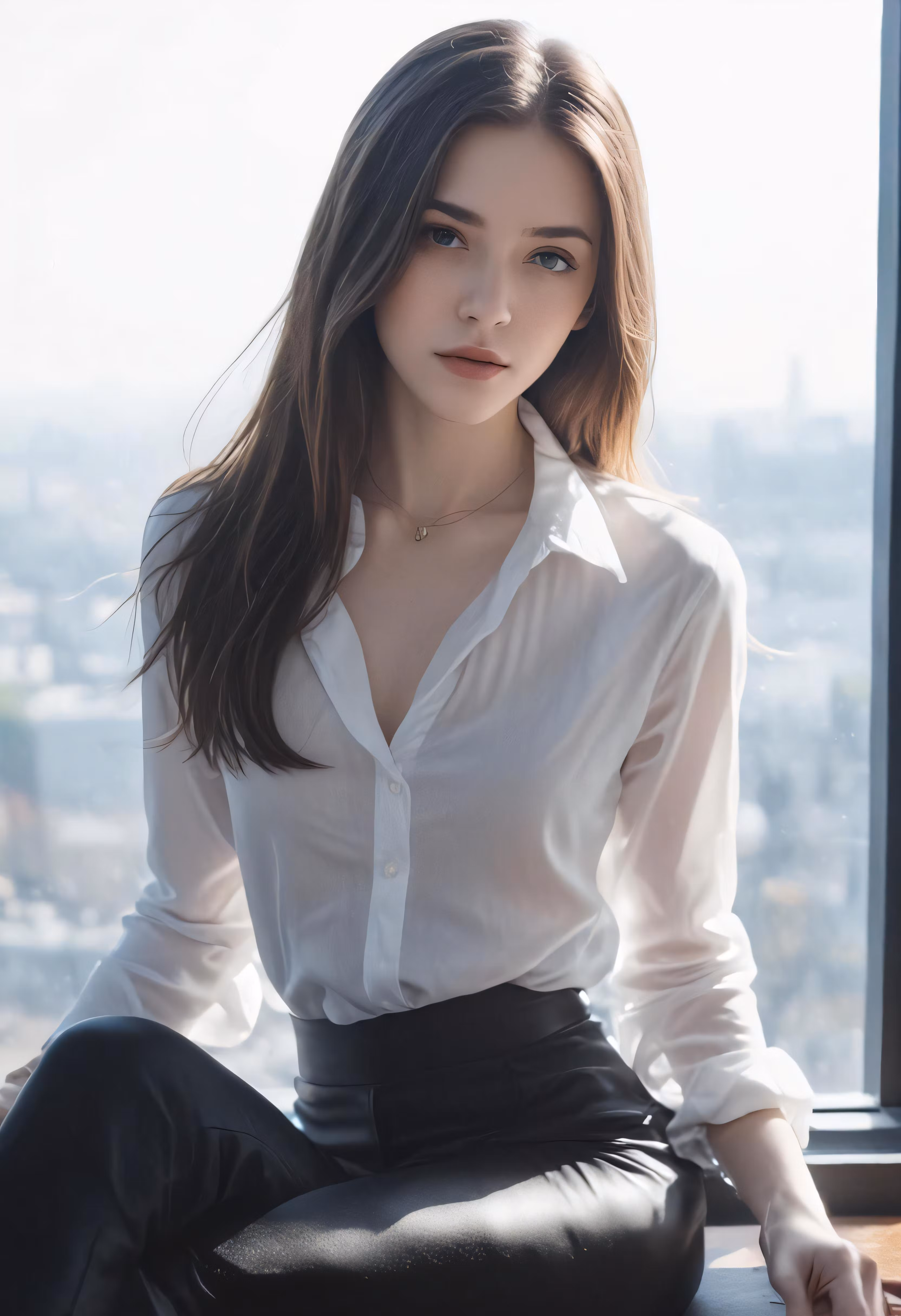 High resolution picture, free to use, the girl sitting in front of the window wearing all white
