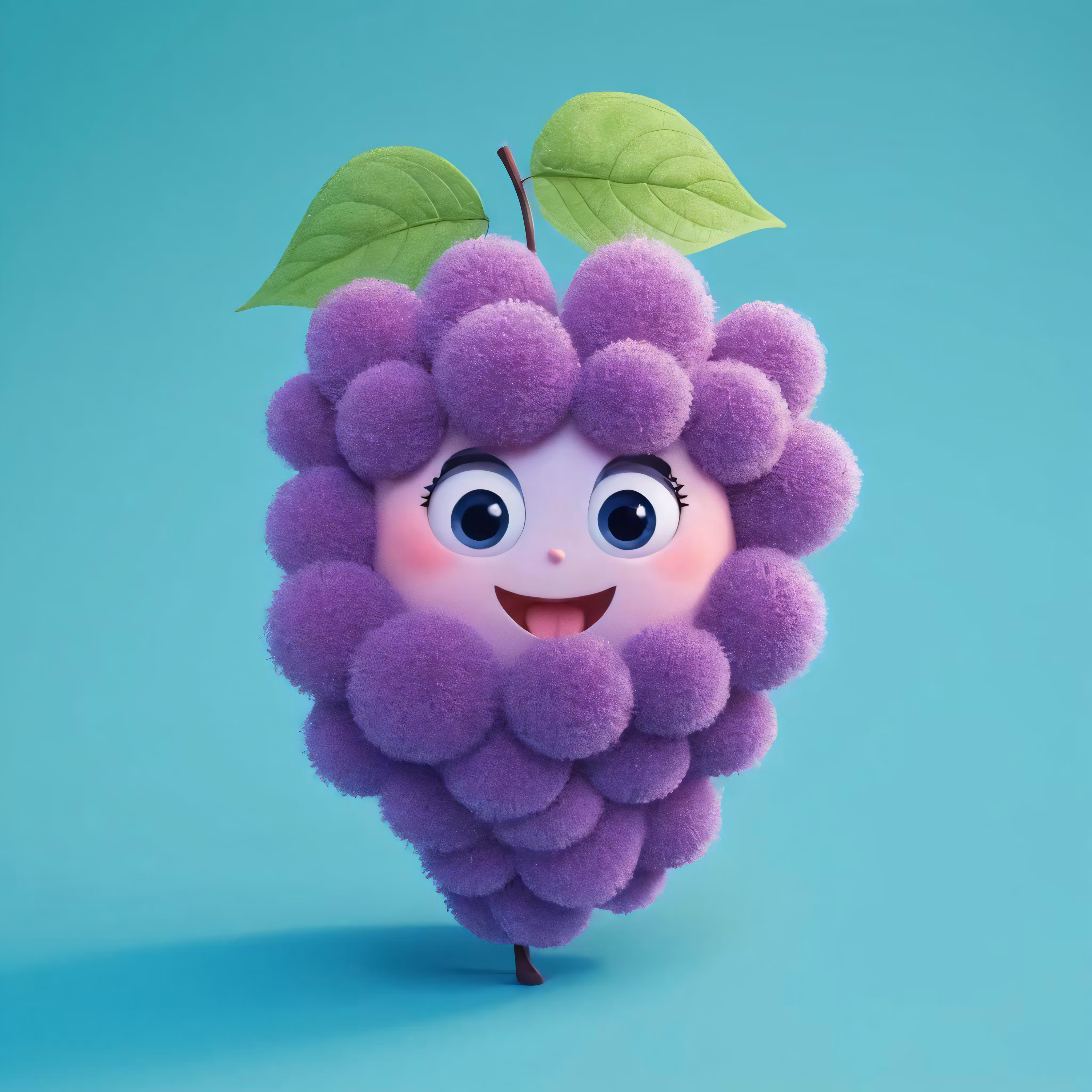 High resolution picture, free to use, the grapes character with large eyes is featured in this animated image