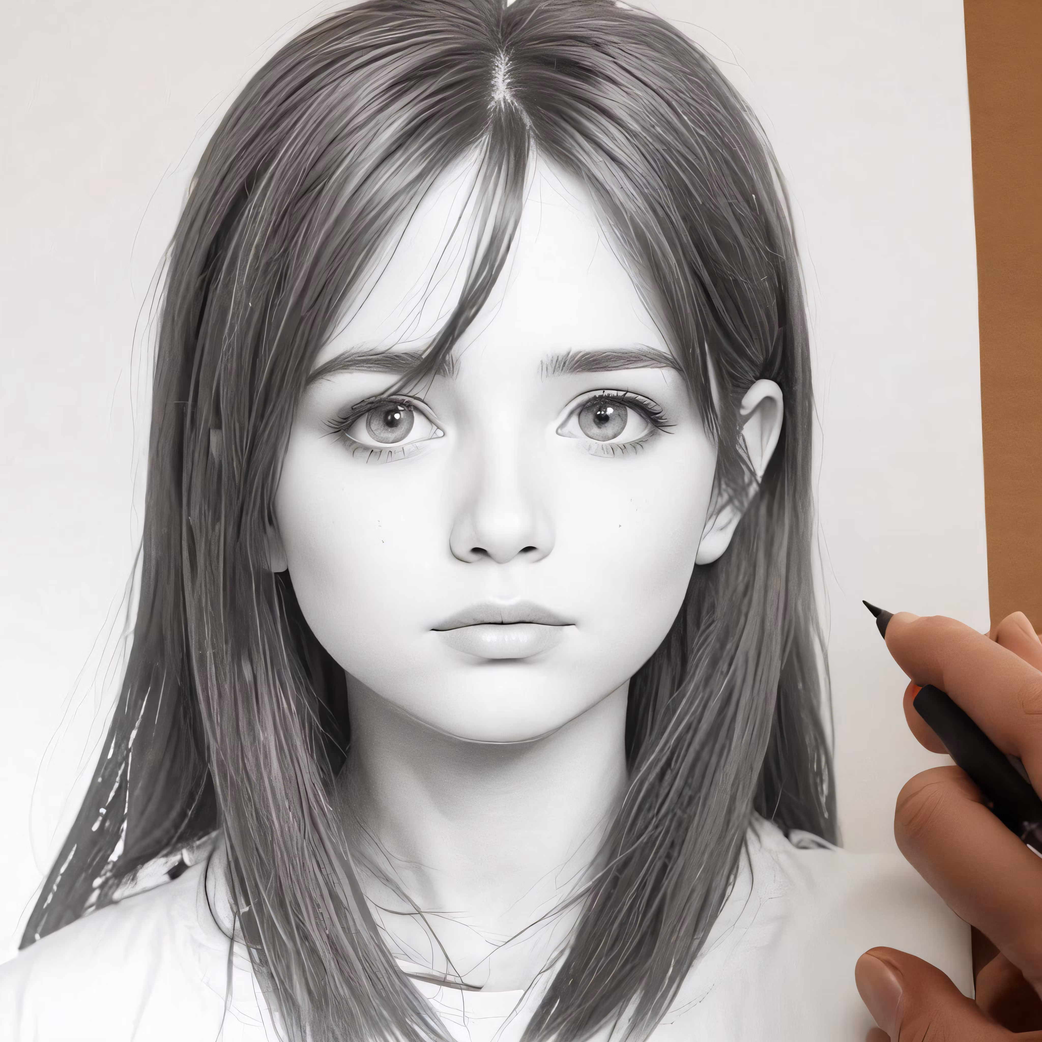 High resolution picture, free to use, the hand is holding a drawing of a girl