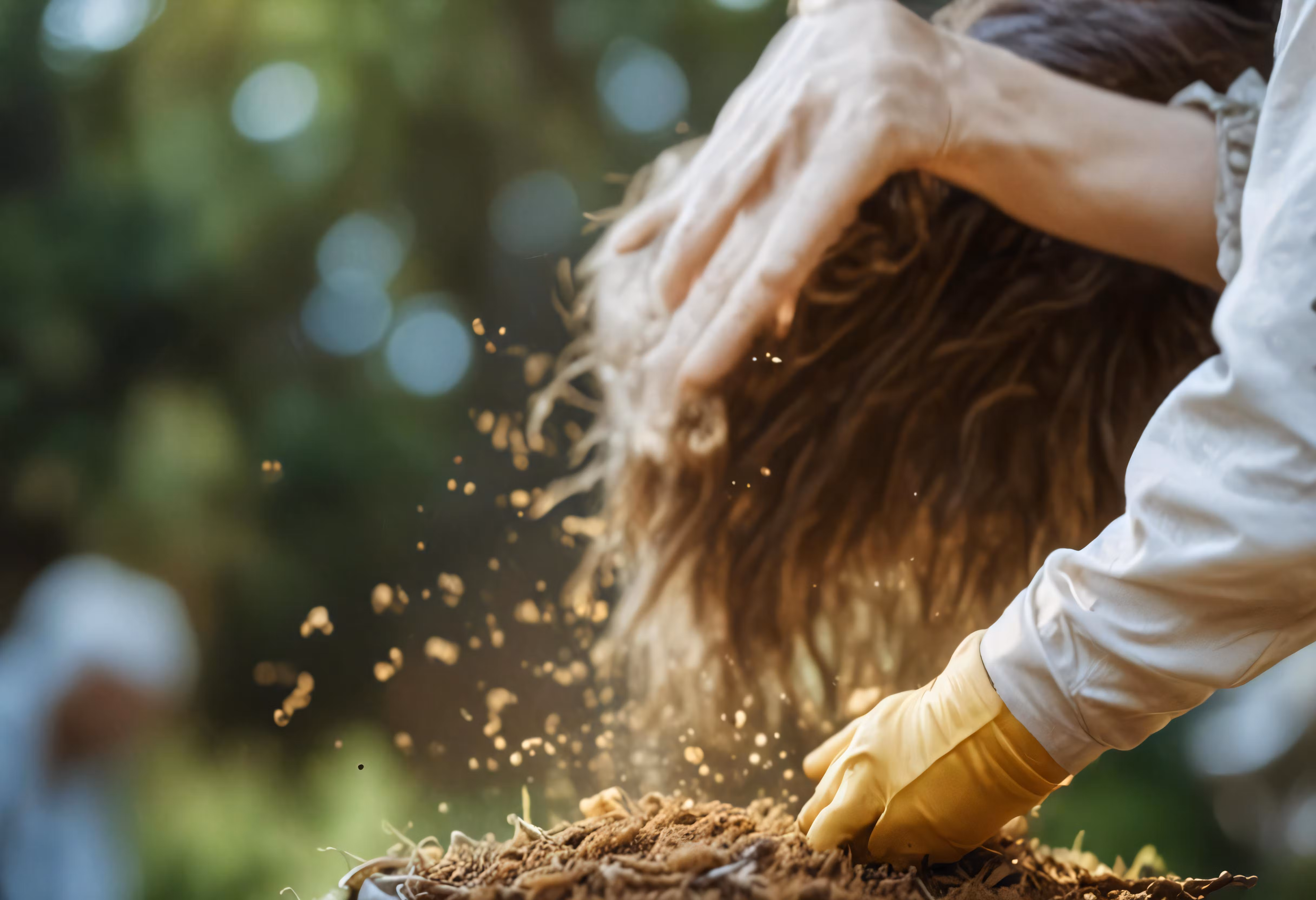 High resolution picture, free to use, the hands are picking dirt off of the ground