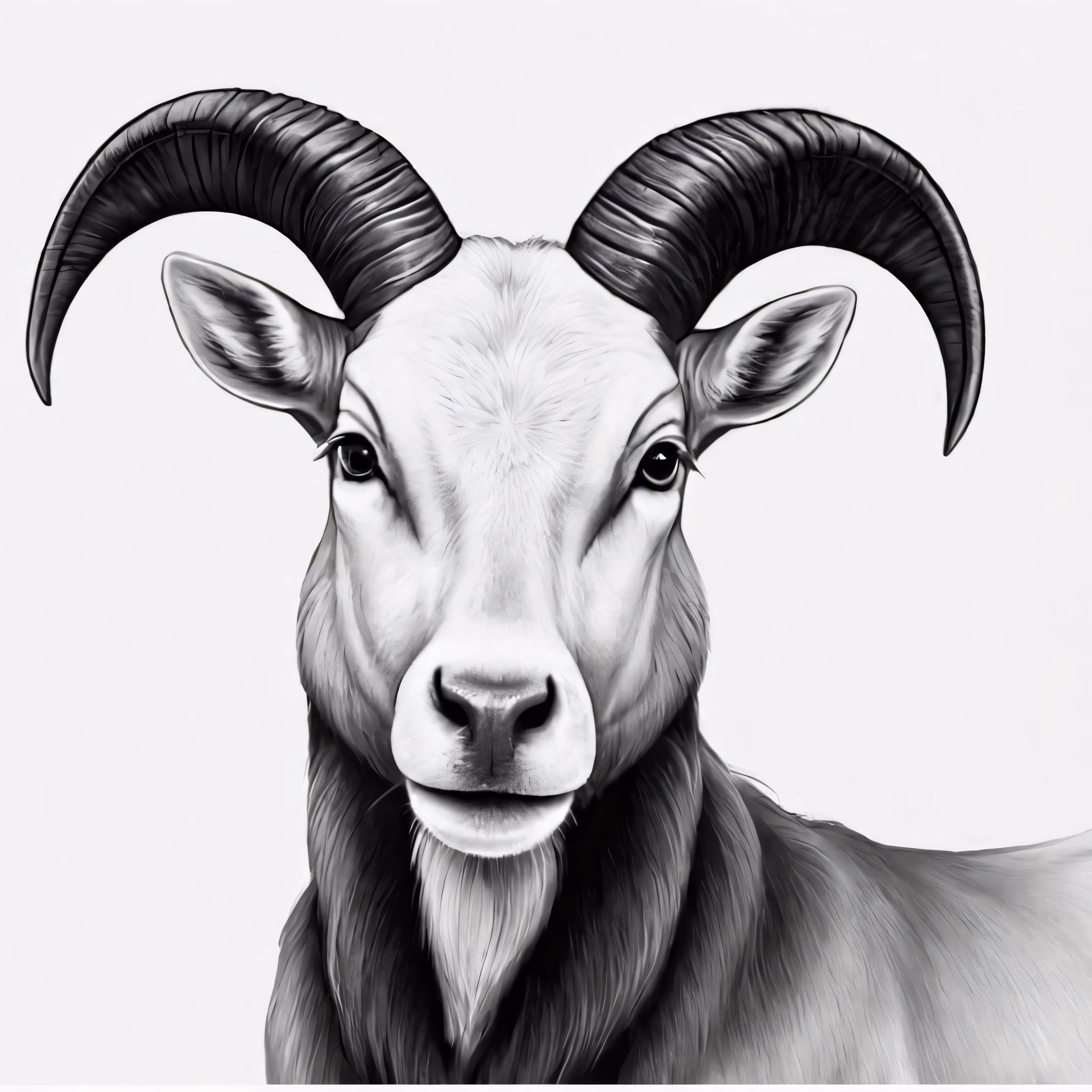 High resolution picture, free to use, the head and horns of an animal drawn in pencil