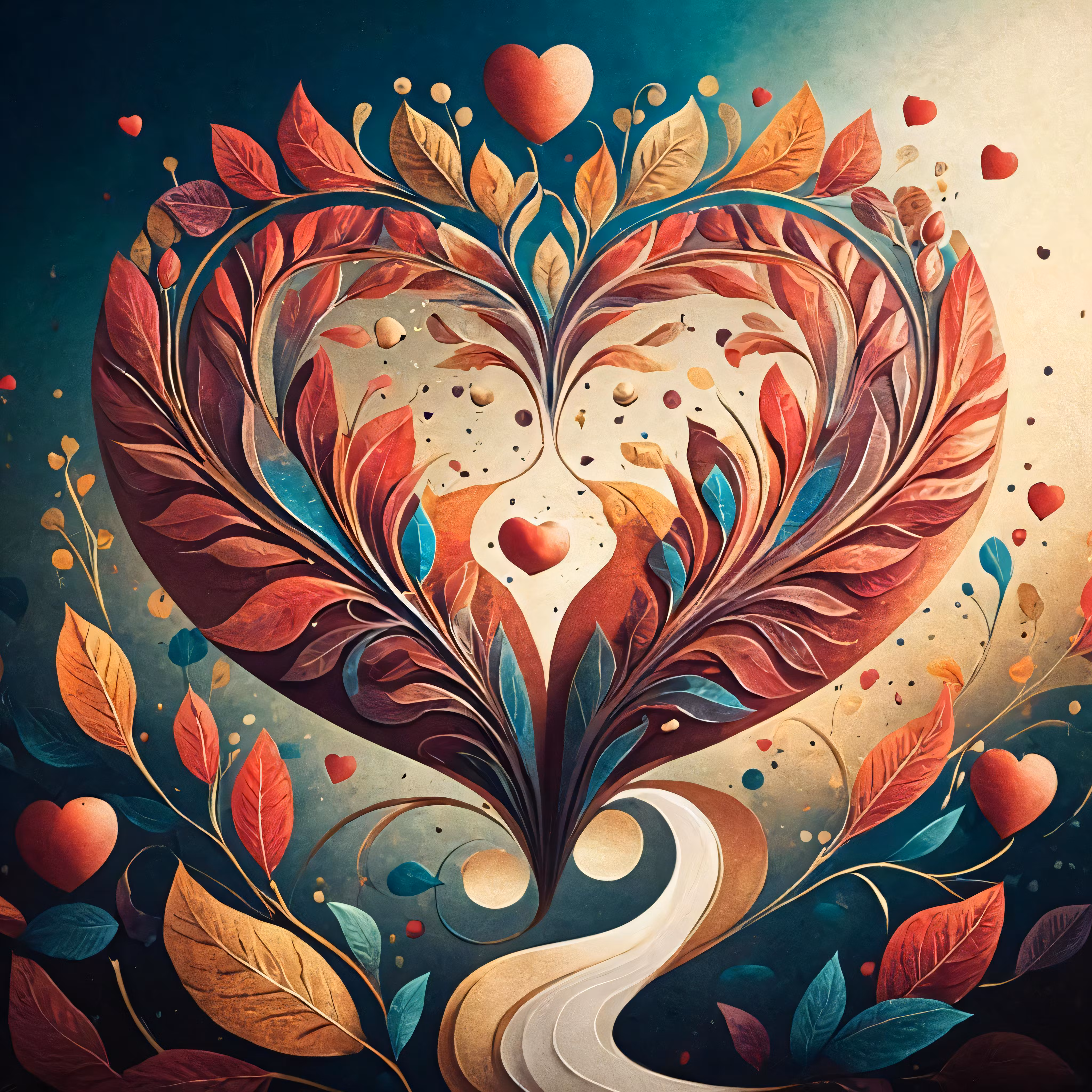 High resolution picture, free to use, the heart is painted with abstract floral designs