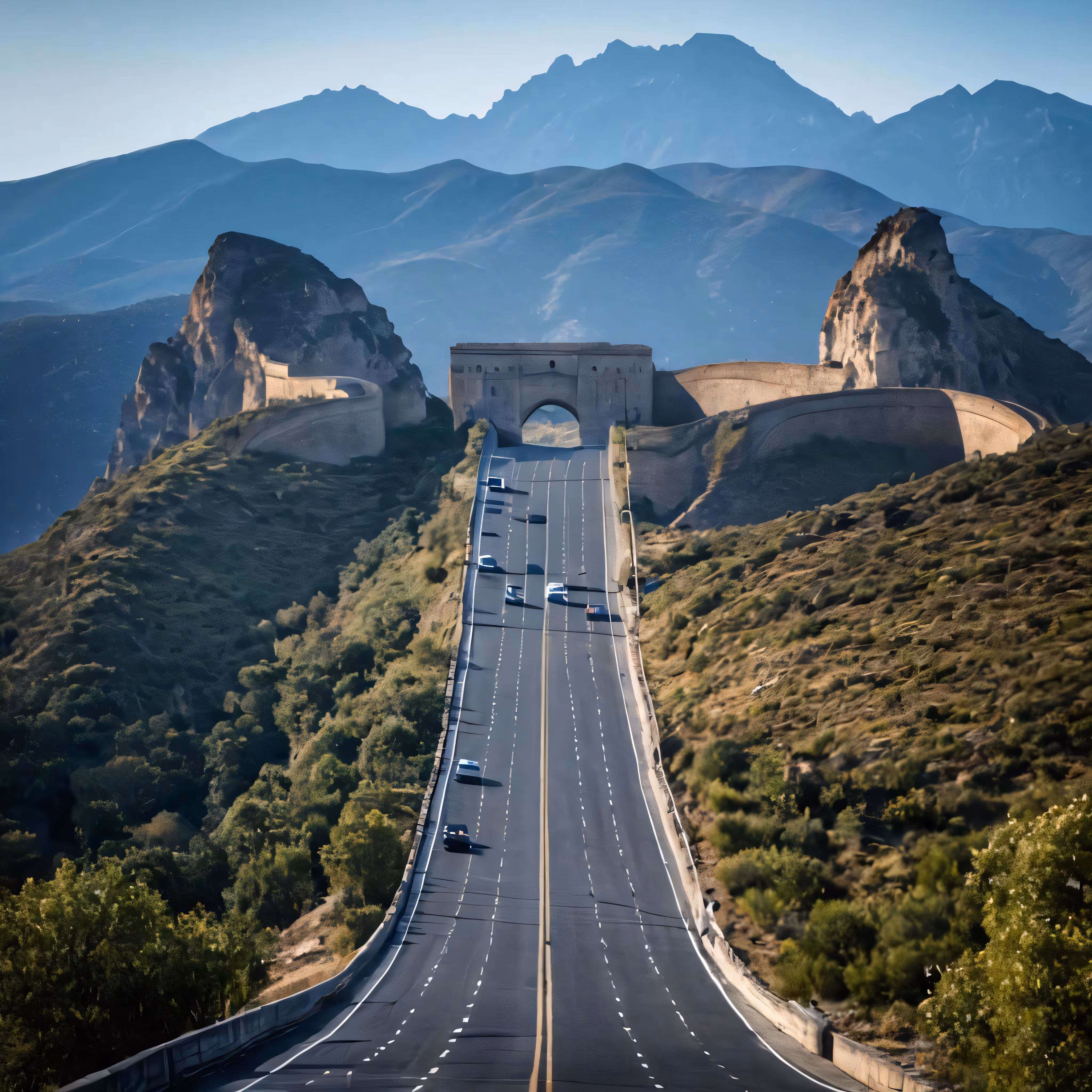 High resolution picture, free to use, the highway is empty and surrounded by mountains