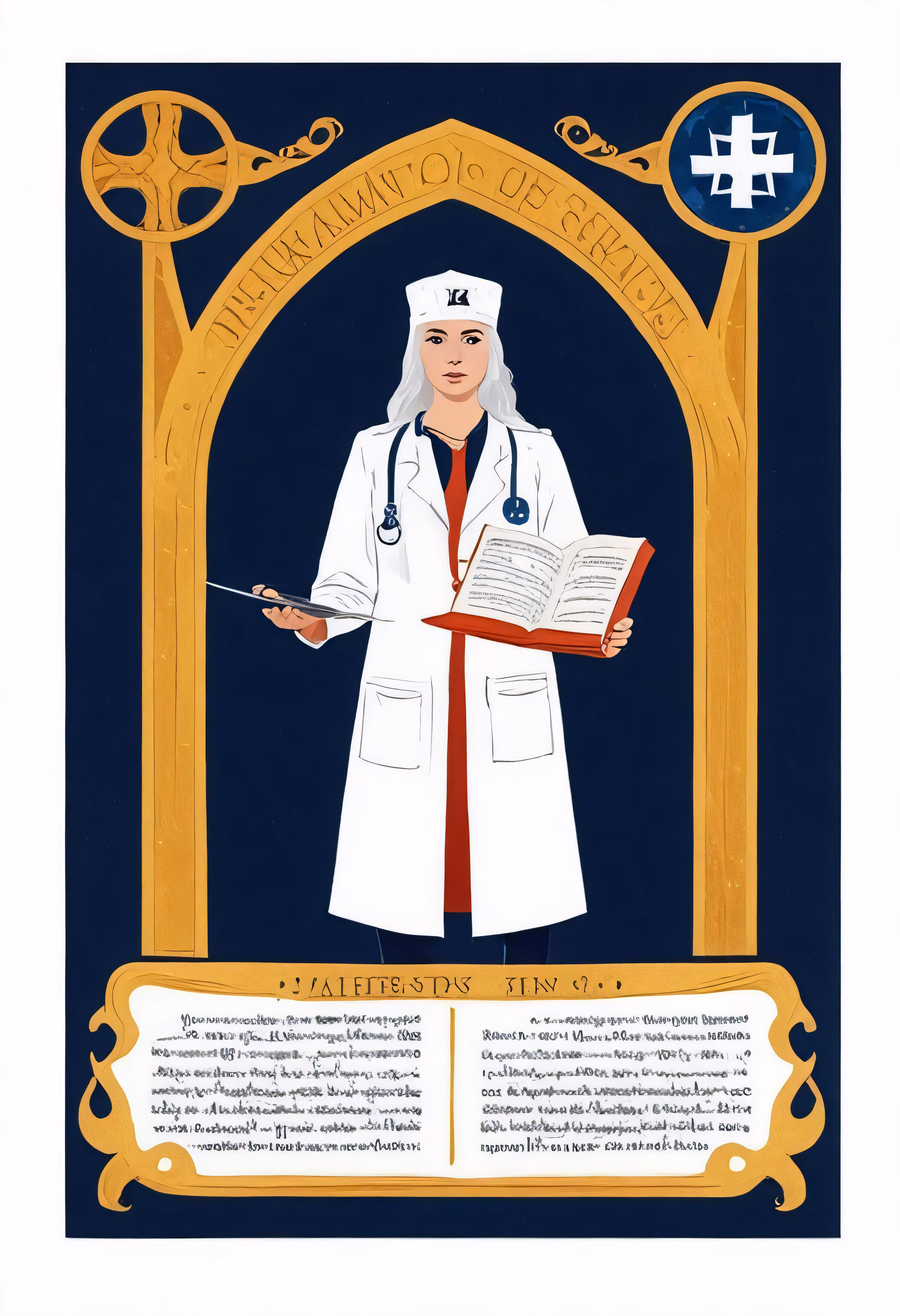 High resolution picture, free to use, the illustrated doctor, written in blue and orange ink on white paper