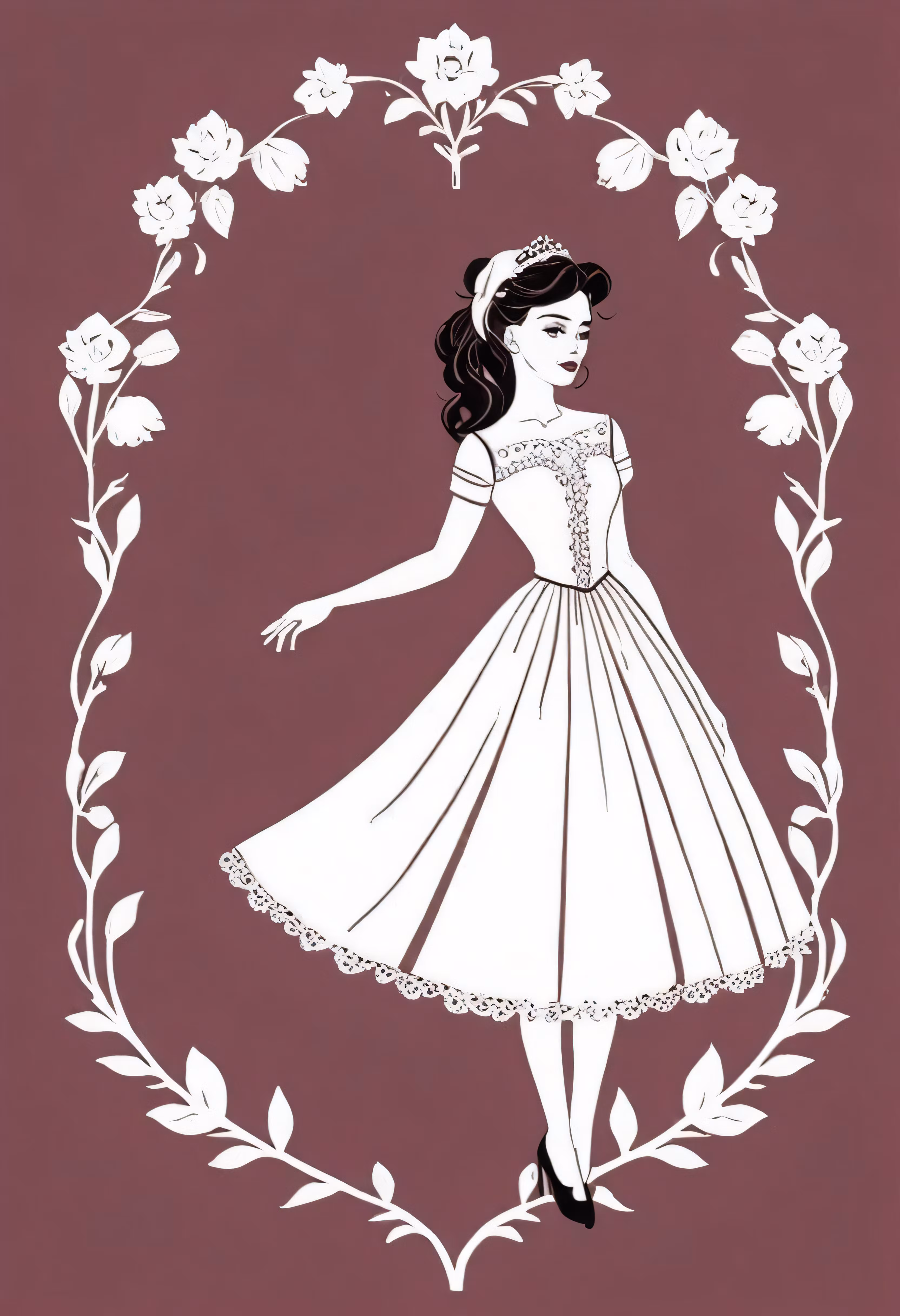 High resolution picture, free to use, the illustrated drawing of princess aurora is shown in front of an ornamental frame