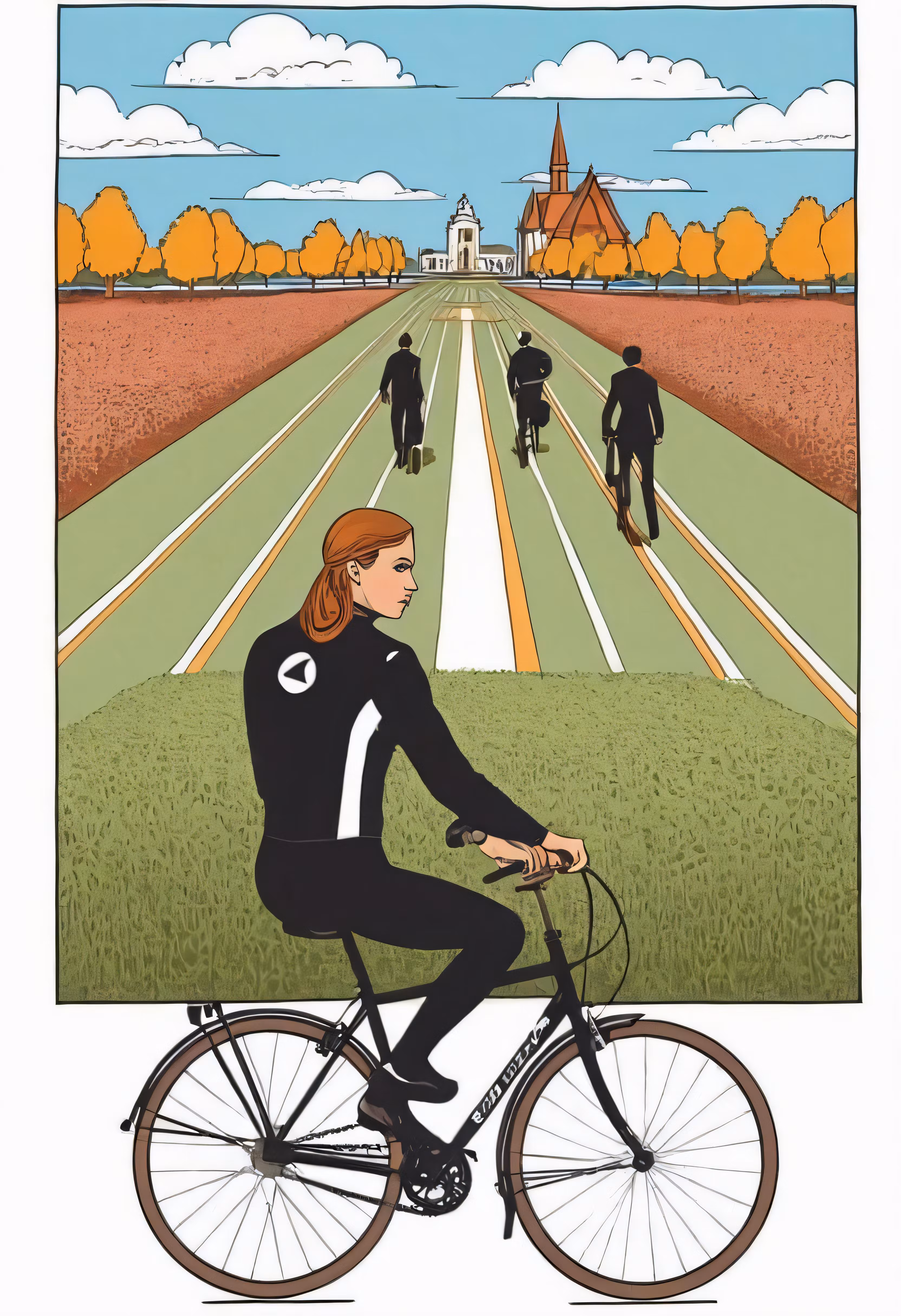 High resolution picture, free to use, the illustrated illustration of a woman riding a bike
