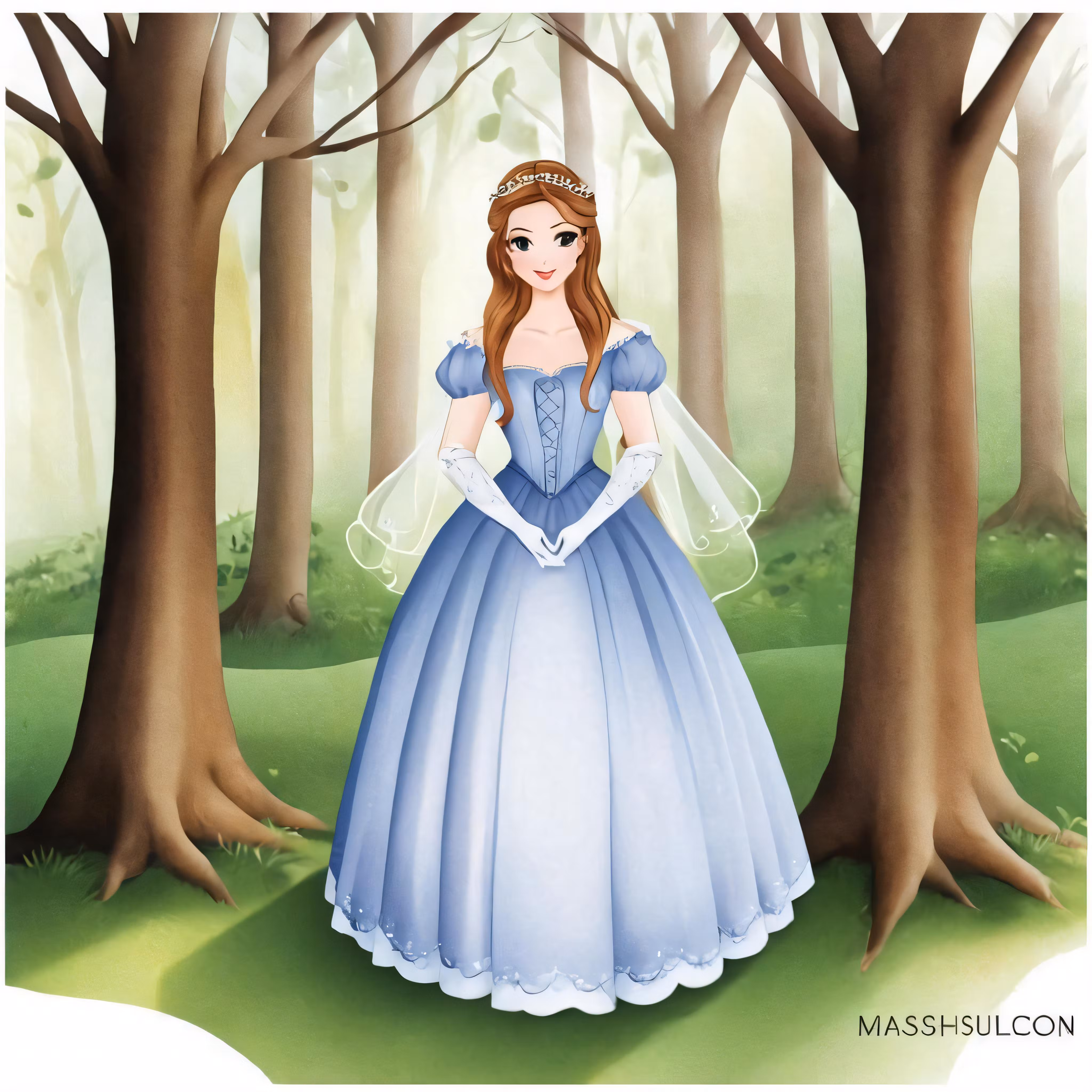High resolution picture, free to use, the illustration shows an animated scene of a princess standing by a tree