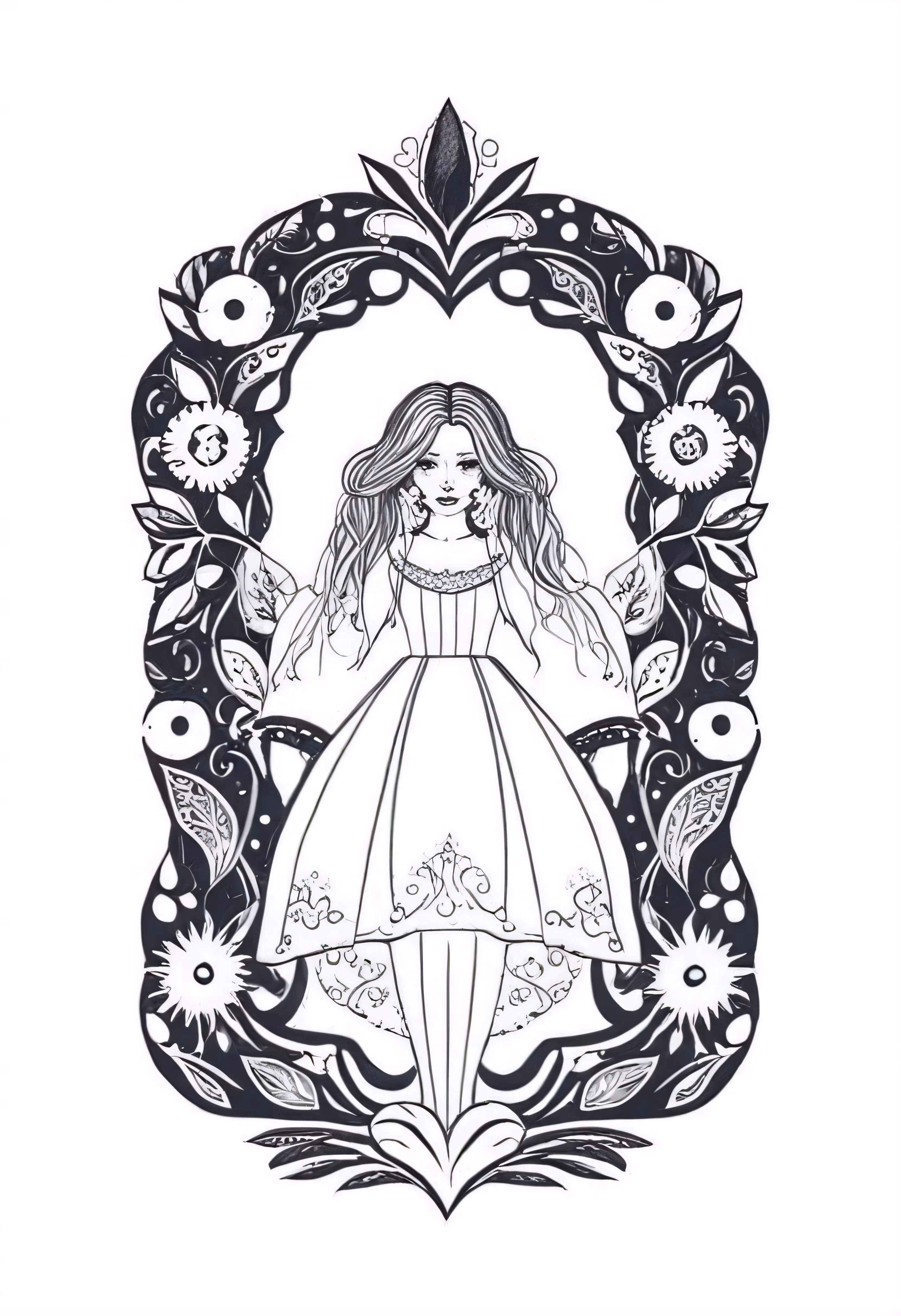 High resolution picture, free to use, the image is in the shape of a flower frame, with a girl in the middle