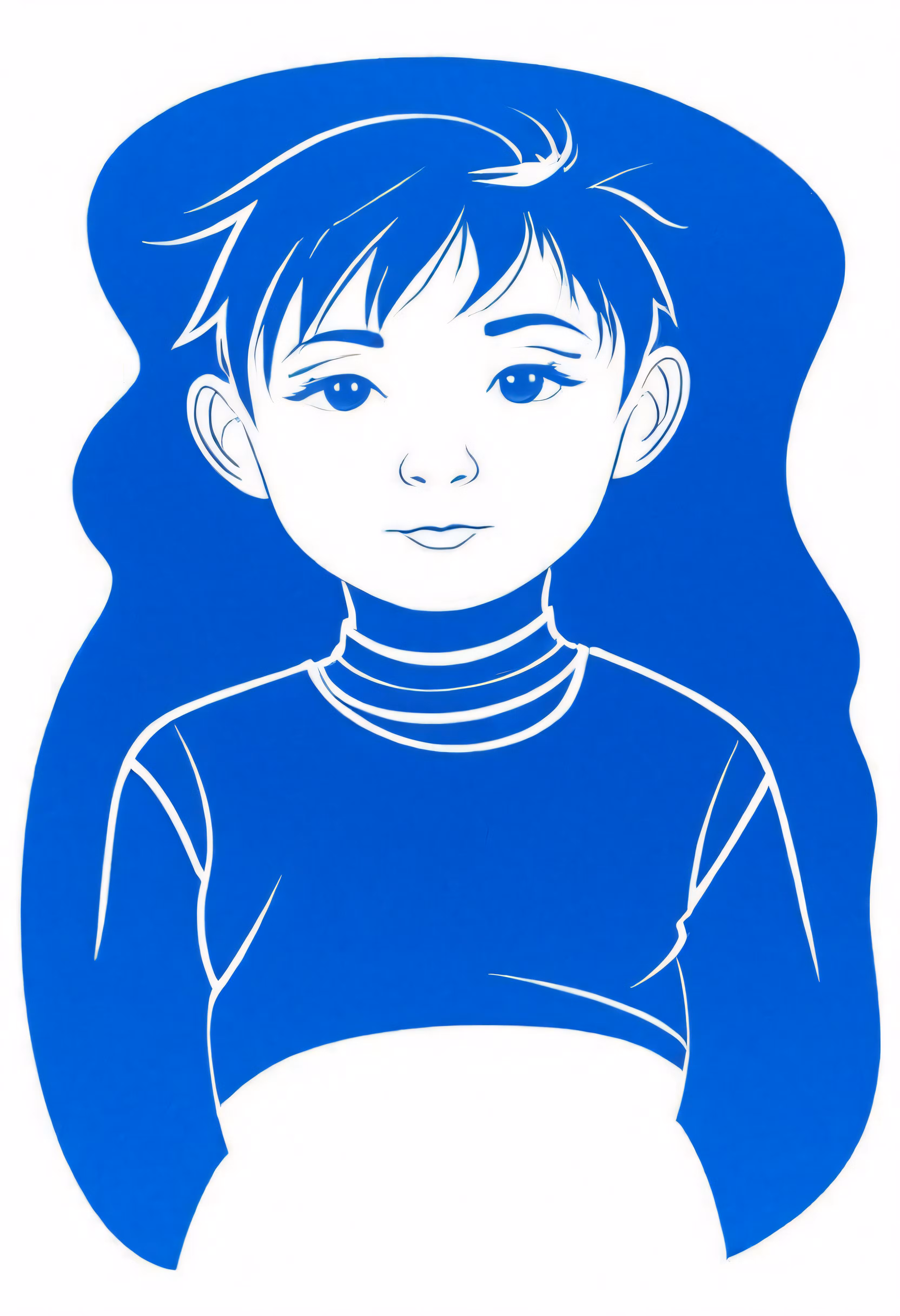 High resolution picture, free to use, the image shows an illustration of the child in blue
