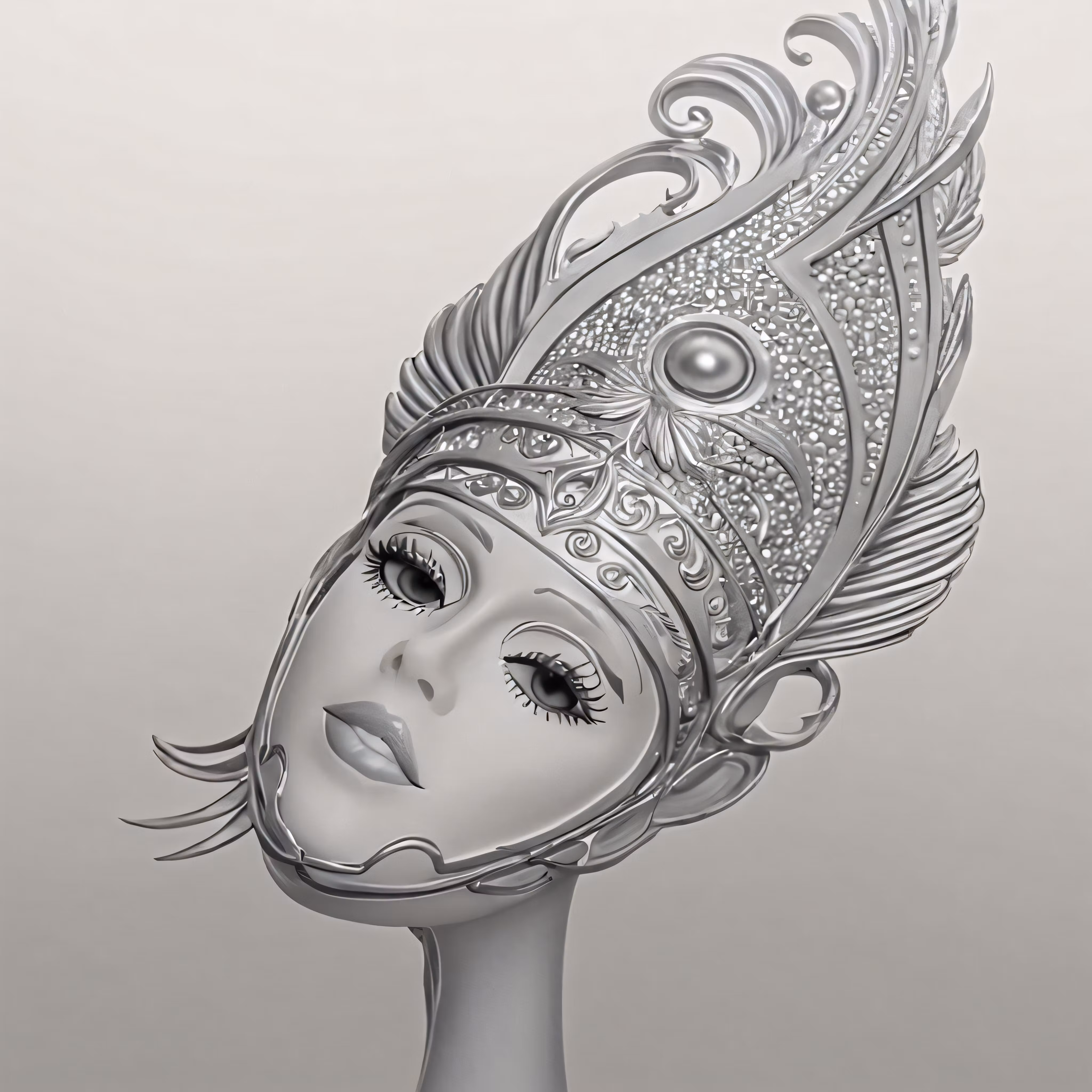 High resolution picture, free to use, the image shows the head of a woman with feathers and beads