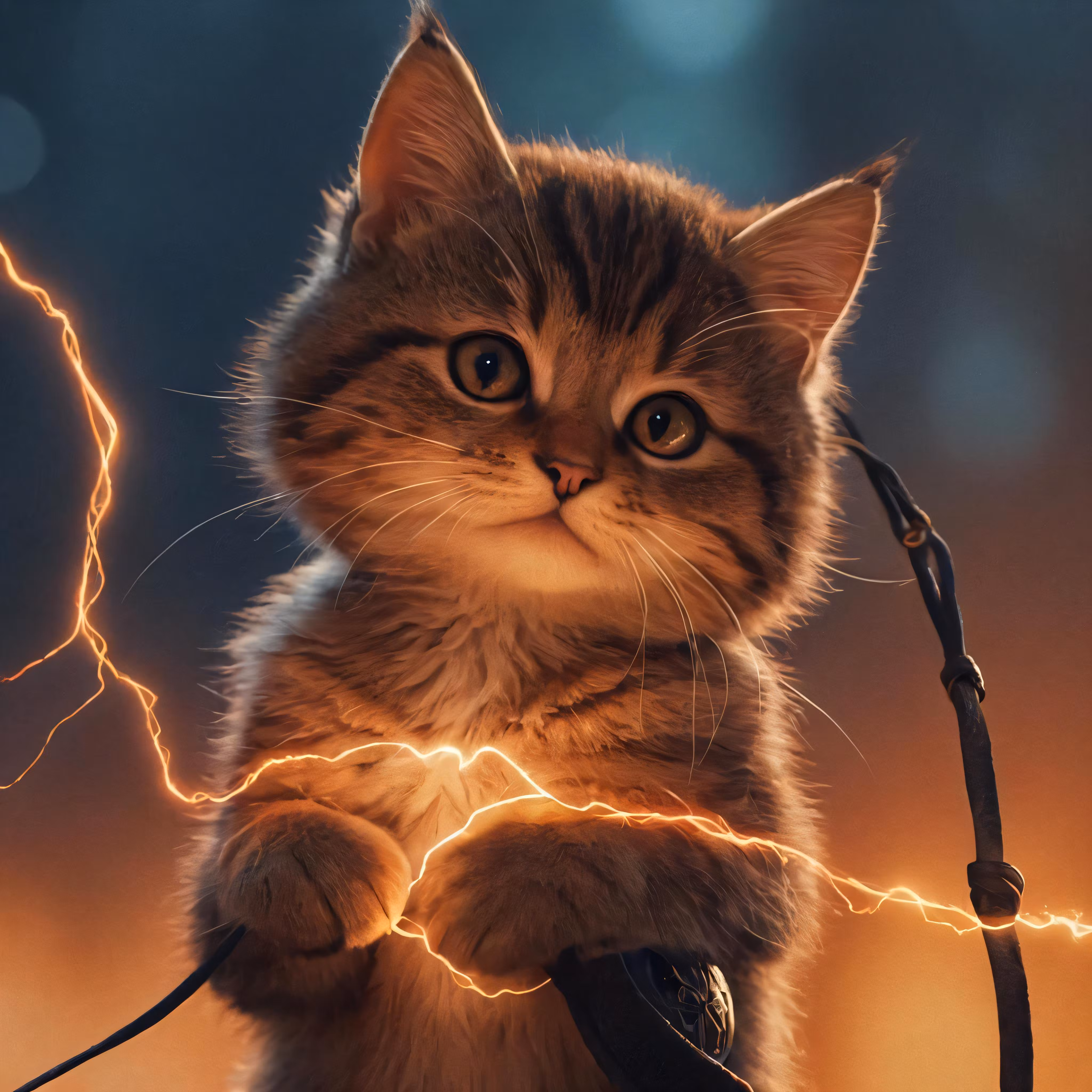 High resolution picture, free to use, the kitten is standing on its hind legs with a leash