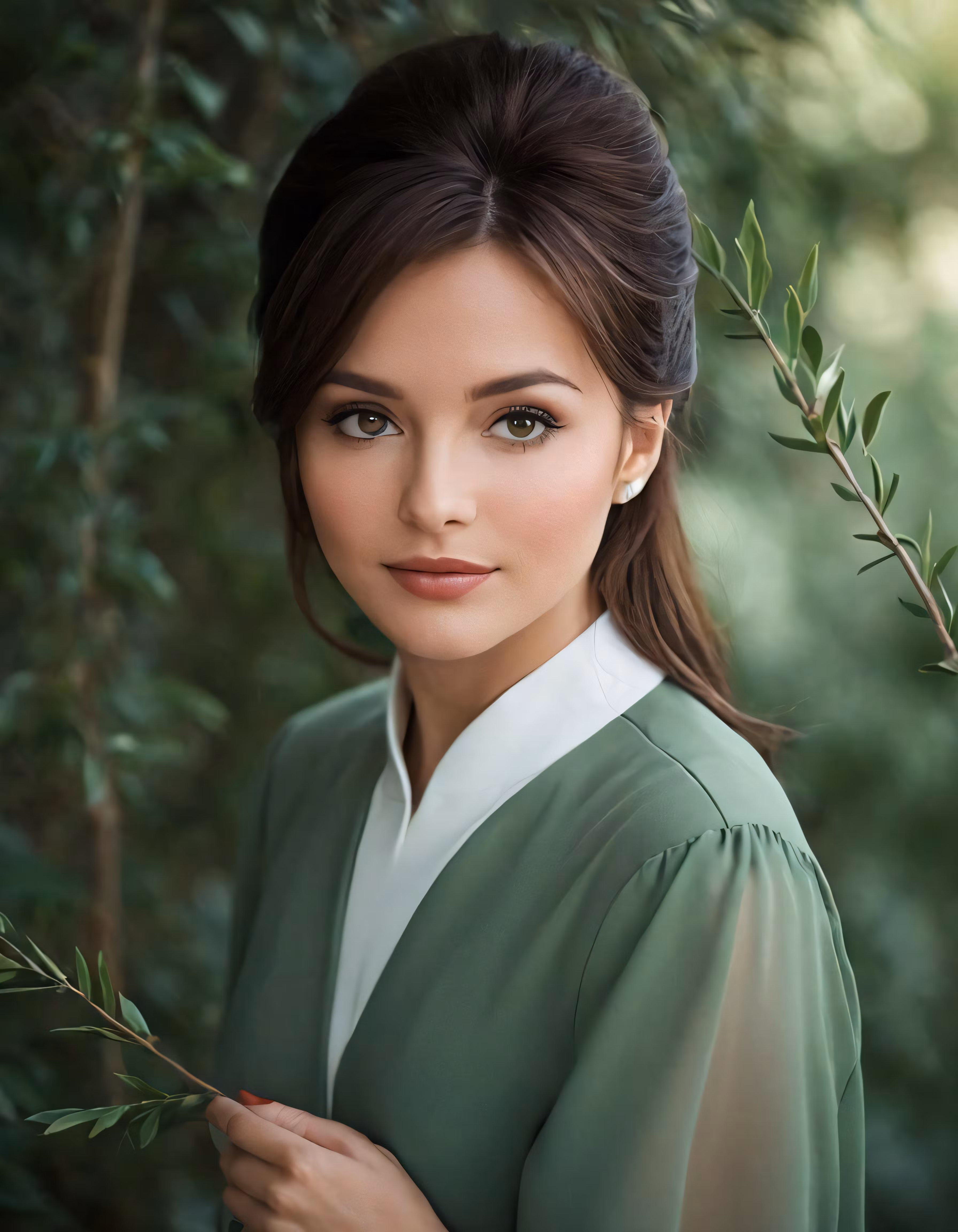 High resolution picture, free to use, the lady is posing for a photo in a green dress