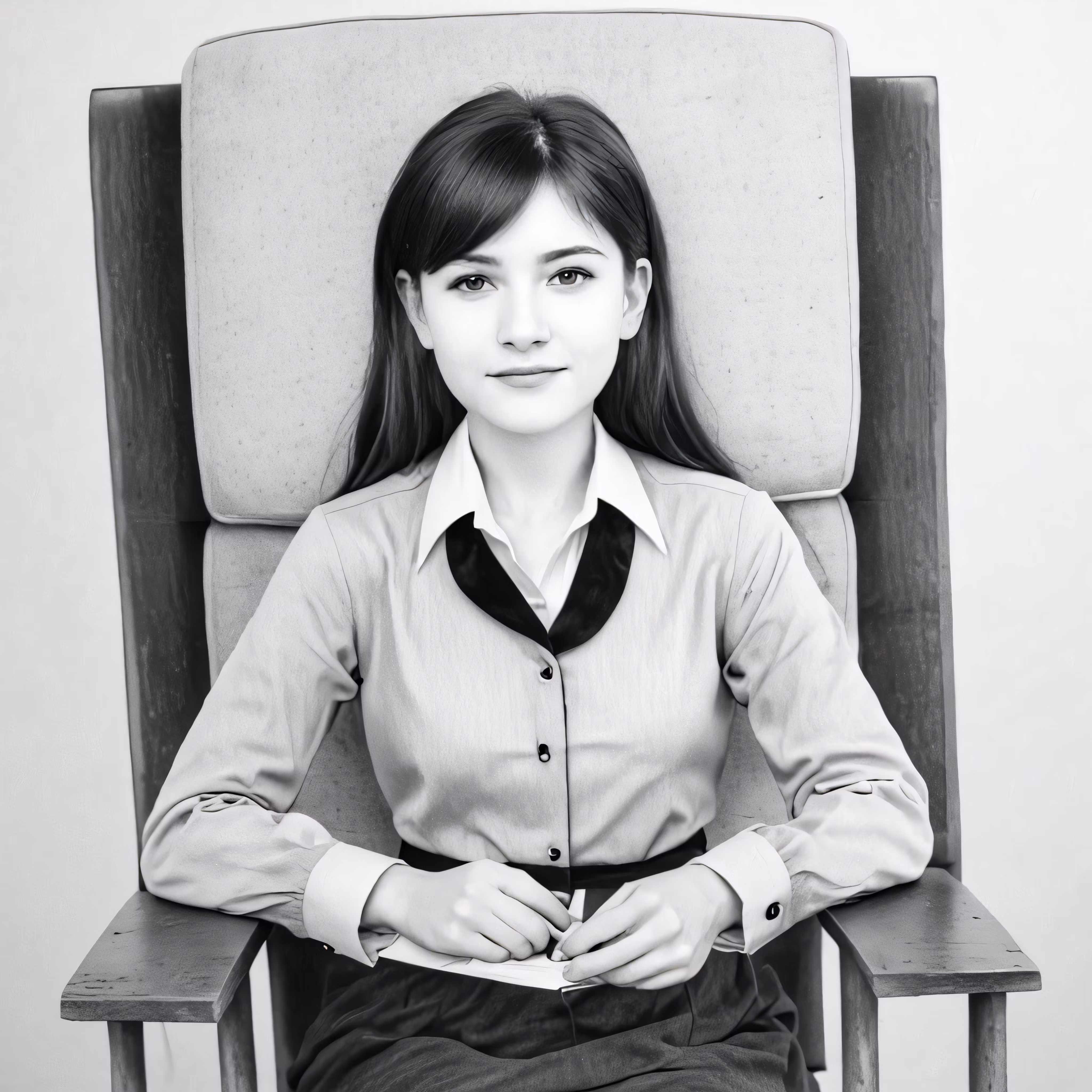 High resolution picture, free to use, the lady is sitting in the chair and posing for a black and white picture