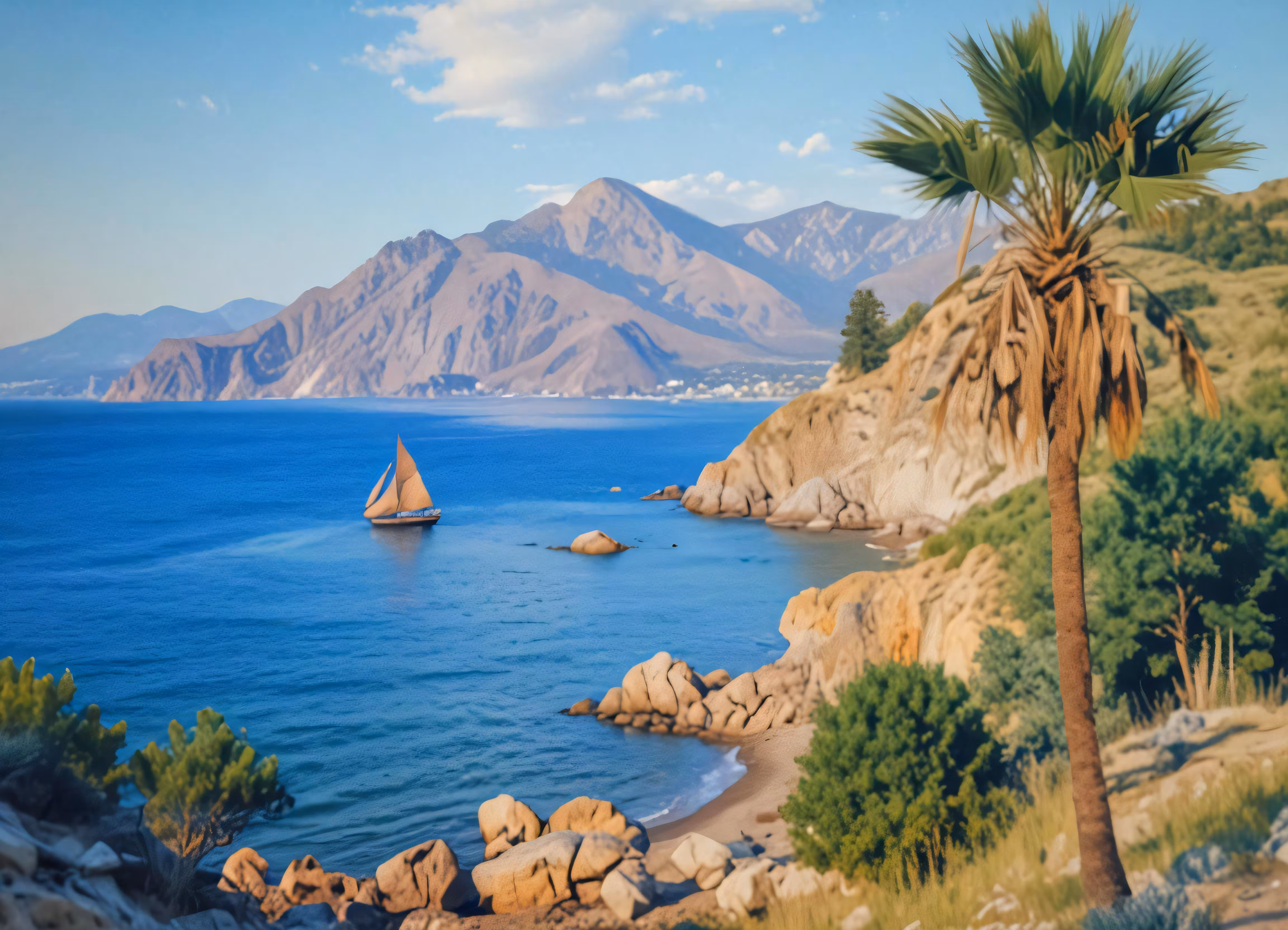 High resolution picture, free to use, the landscape looks majestic, with trees and mountains in the distance