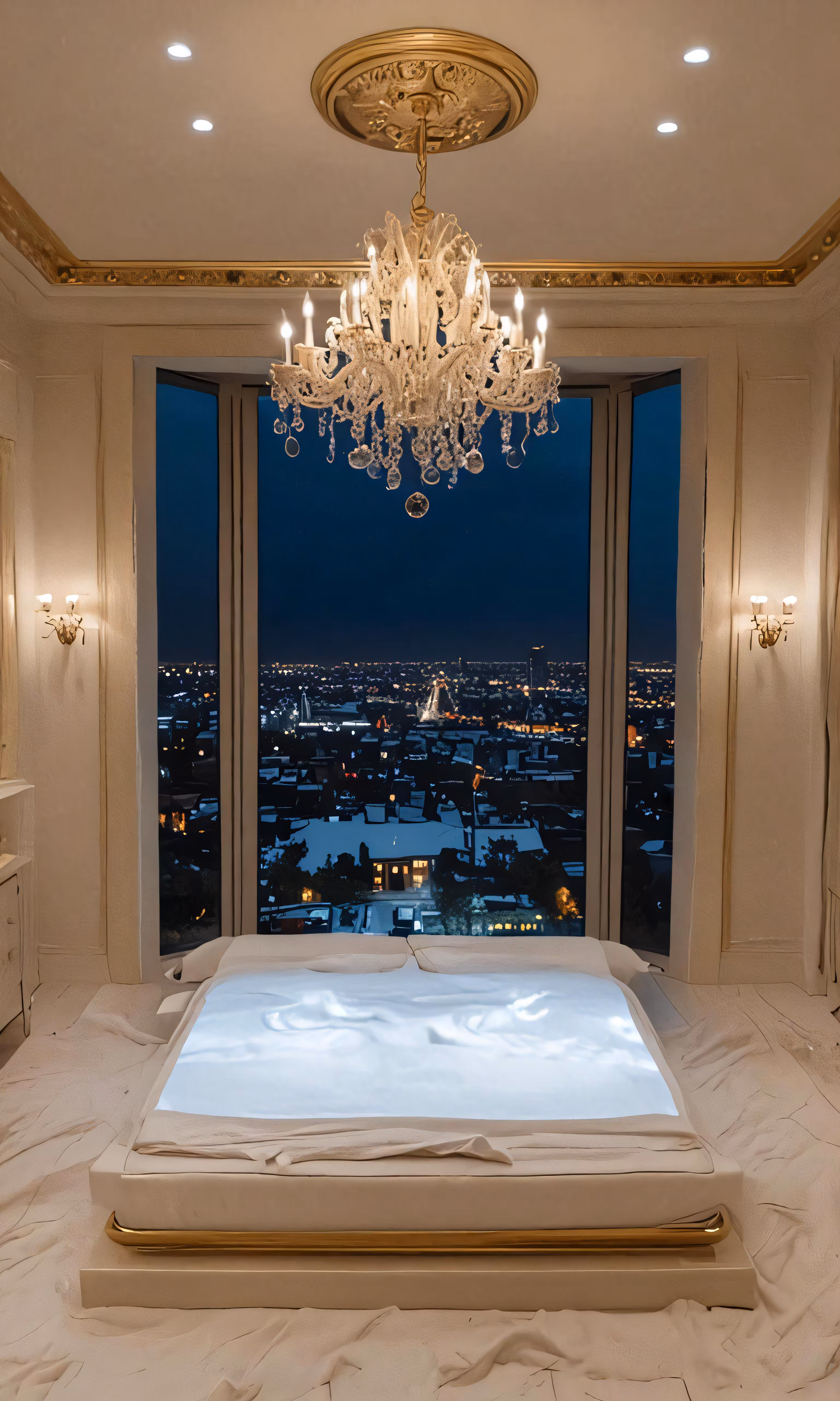 High resolution picture, free to use, the large bathtub has a chandelier and lights in the room