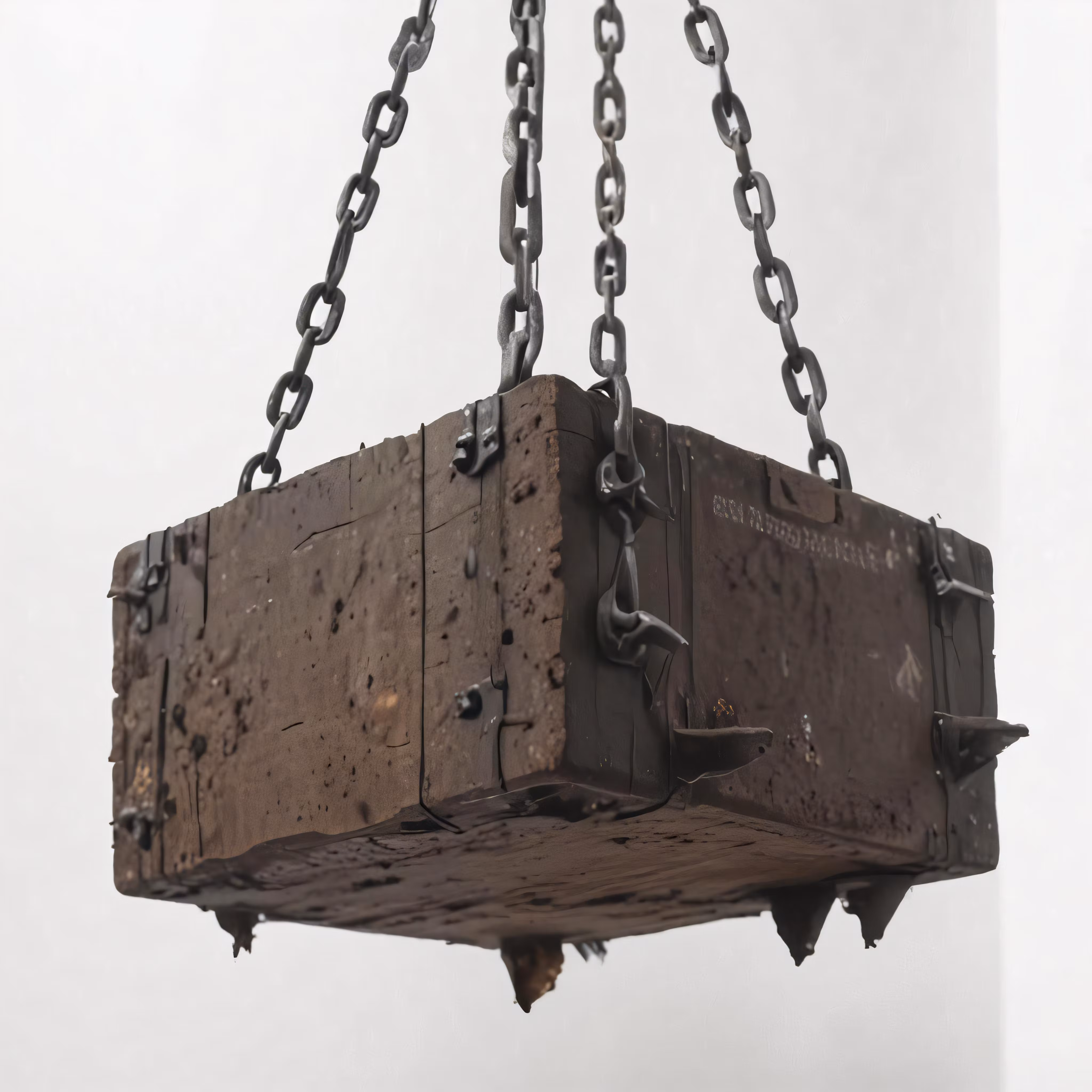 High resolution picture, free to use, the large brick box is attached to chains