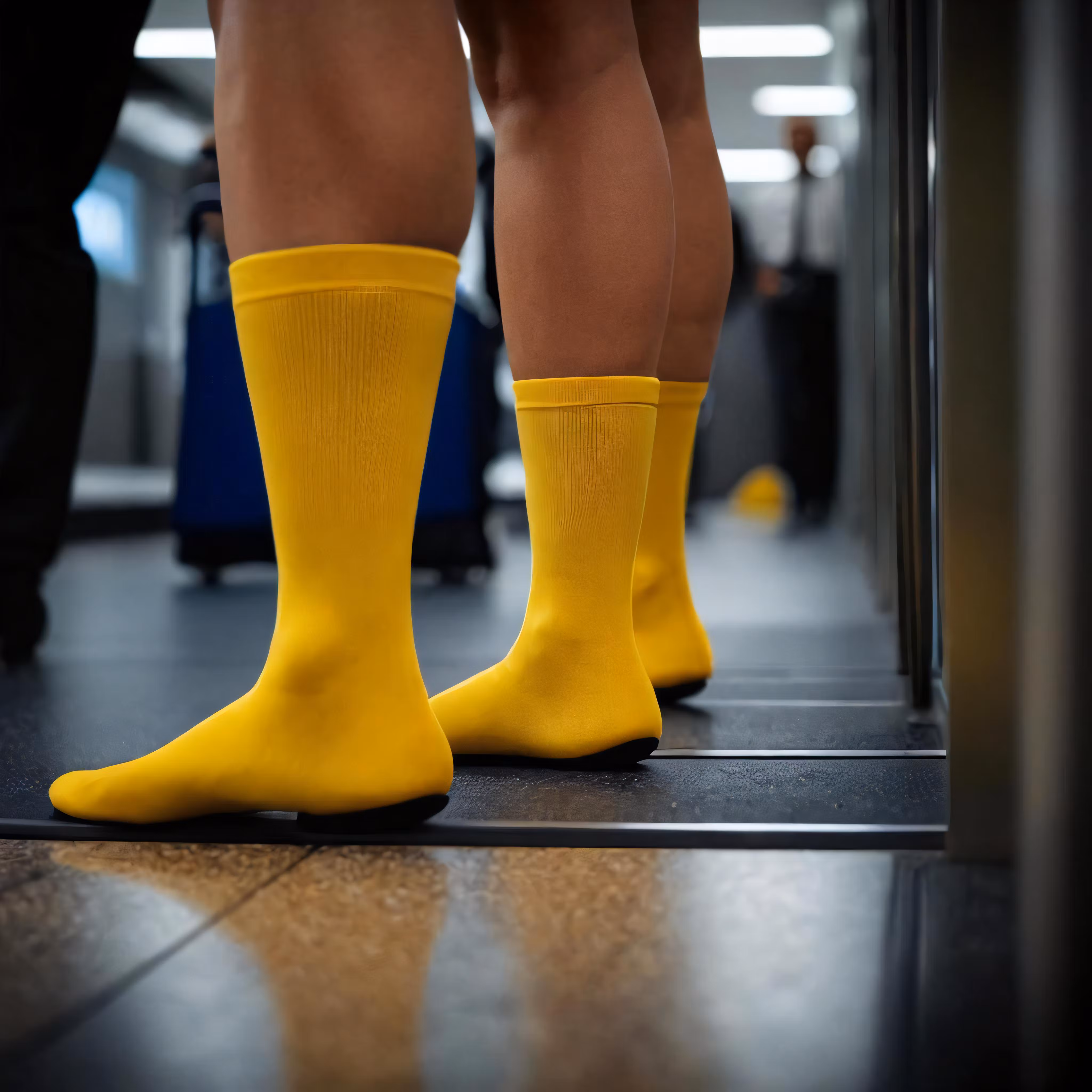 High resolution picture, free to use, the legs of people with yellow socks standing on a floor