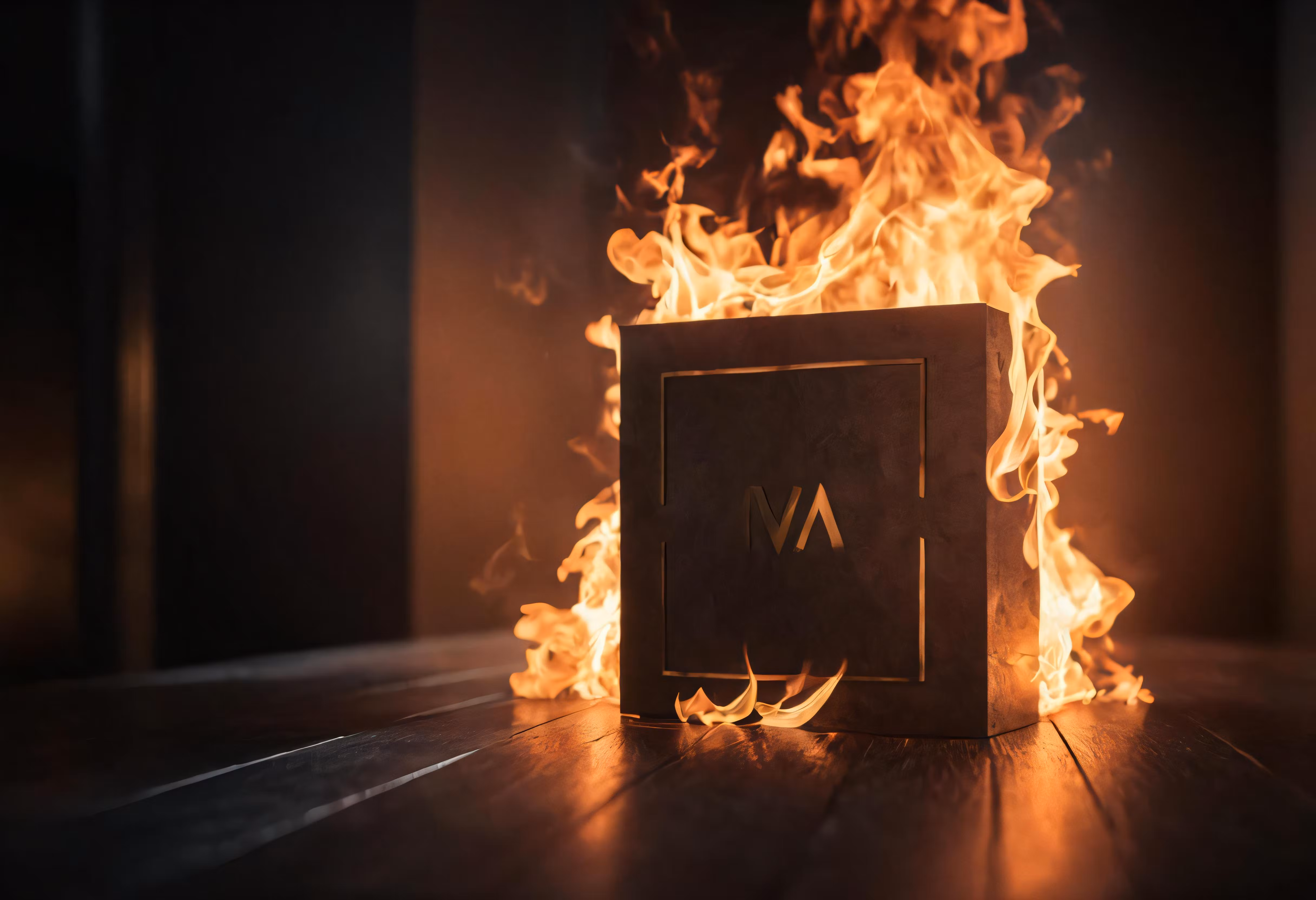 High resolution picture, free to use, the letter am is displayed in a box on fire