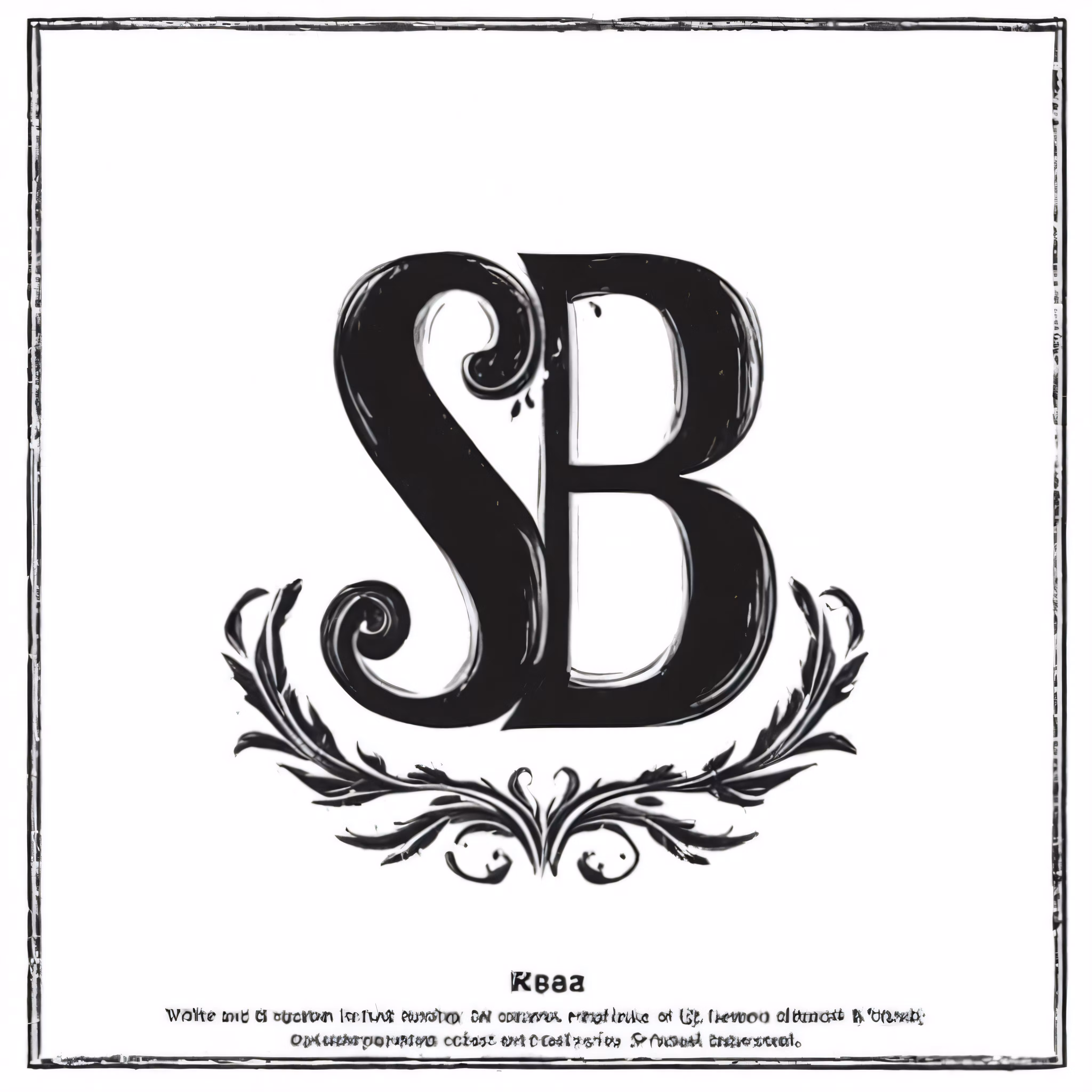 High resolution picture, free to use, the letter b, with a floral frame in black and white