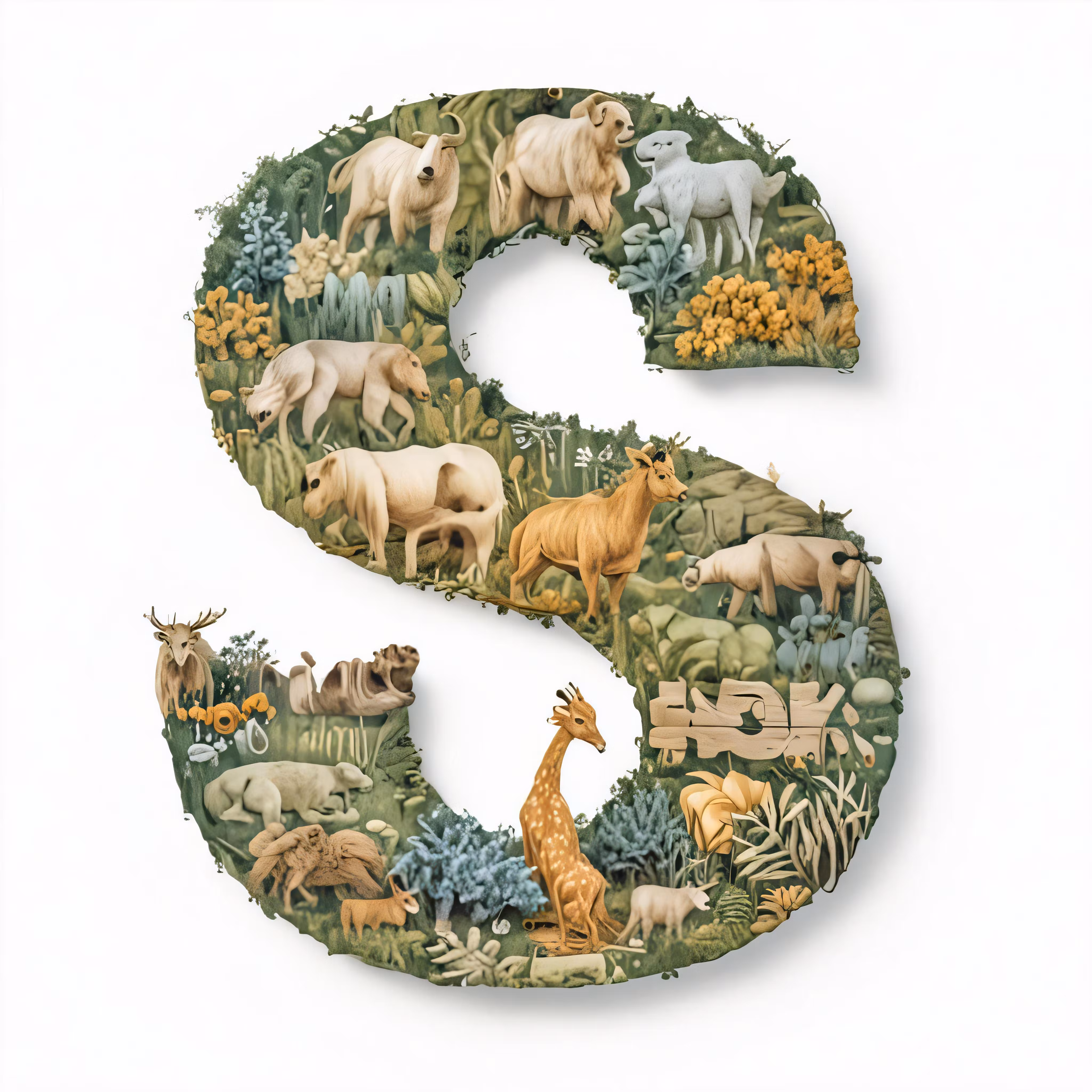 High resolution picture, free to use, the letter s is made up of animals