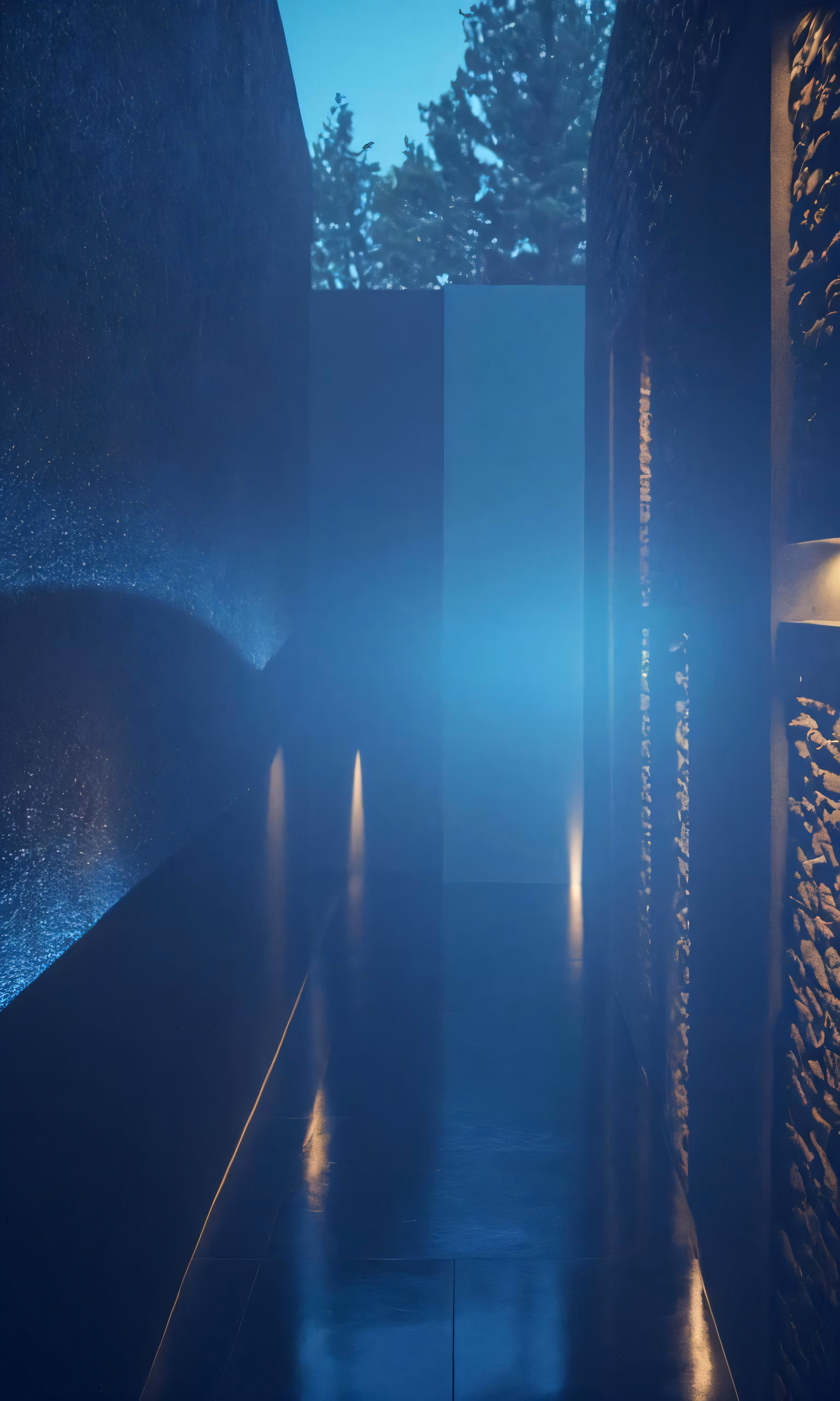 High resolution picture, free to use, the light in the distance is shining through some fog
