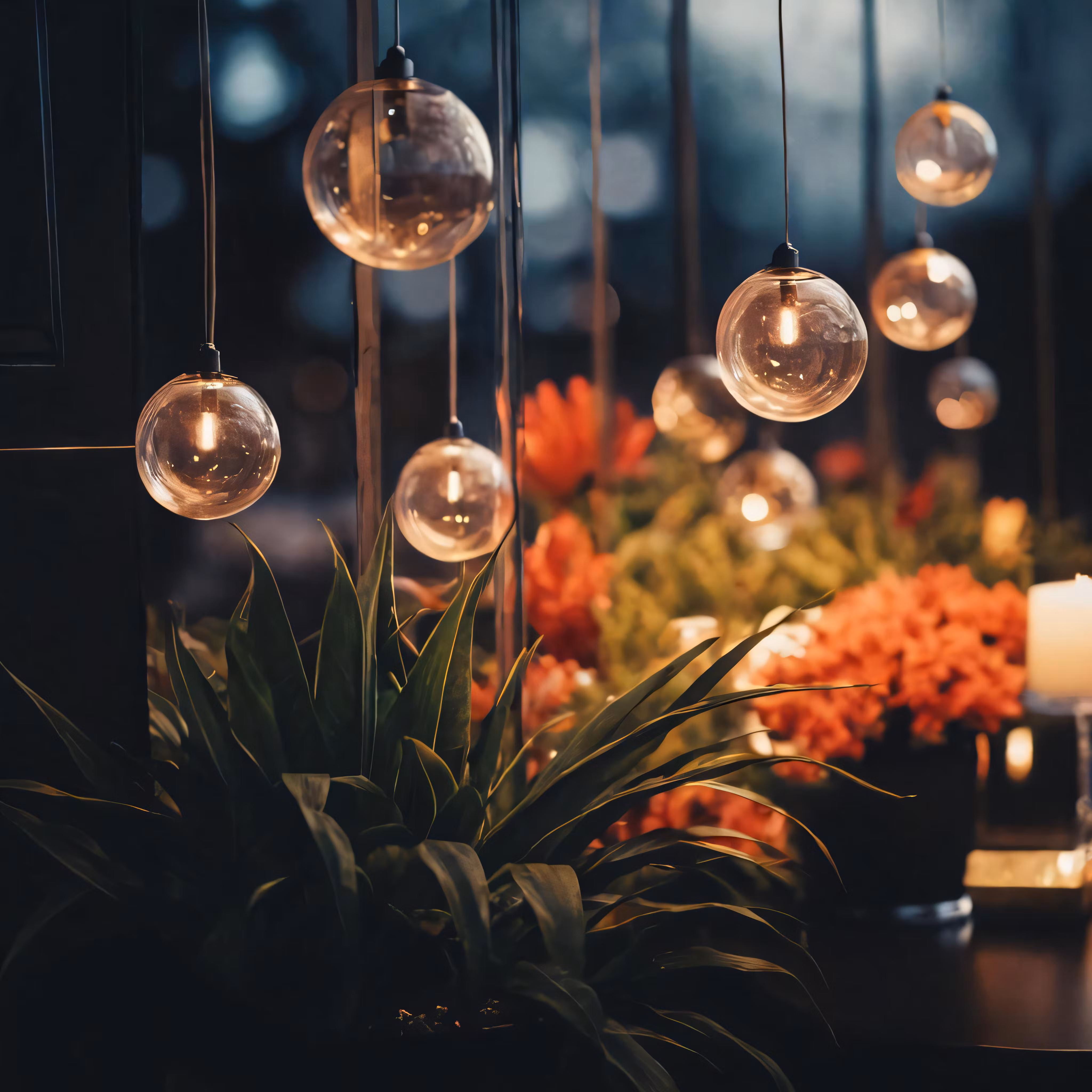 High resolution picture, free to use, the lights are hanging over the potted plant