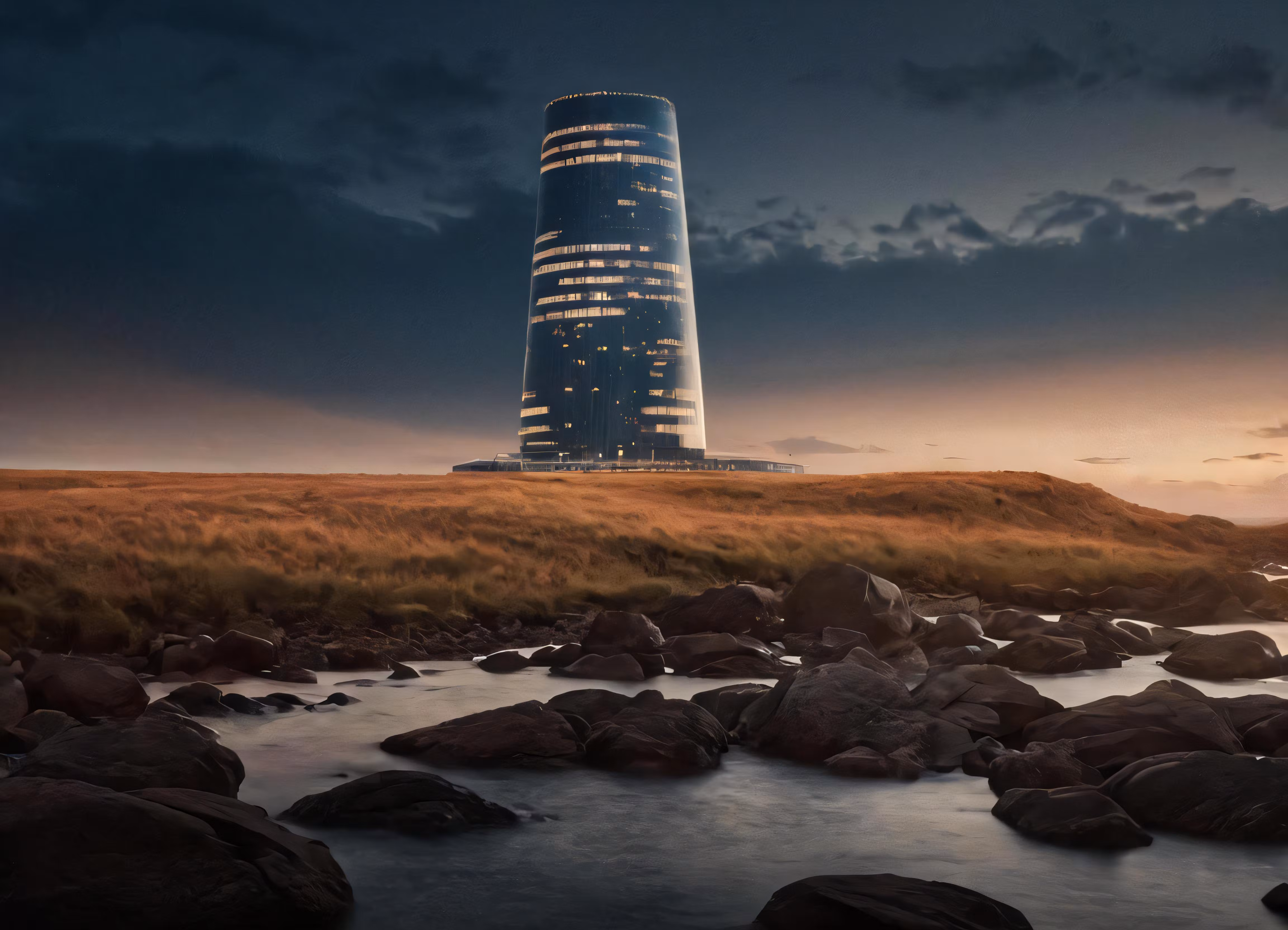 High resolution picture, free to use, the lights on the building can be seen from water